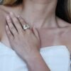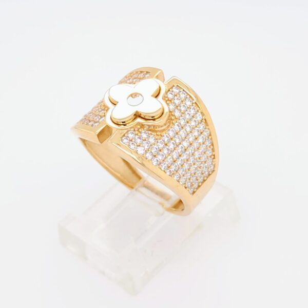 Anillo Ancho Trebol Central c/ Zircones Pave – Oro Amarillo 18Kts