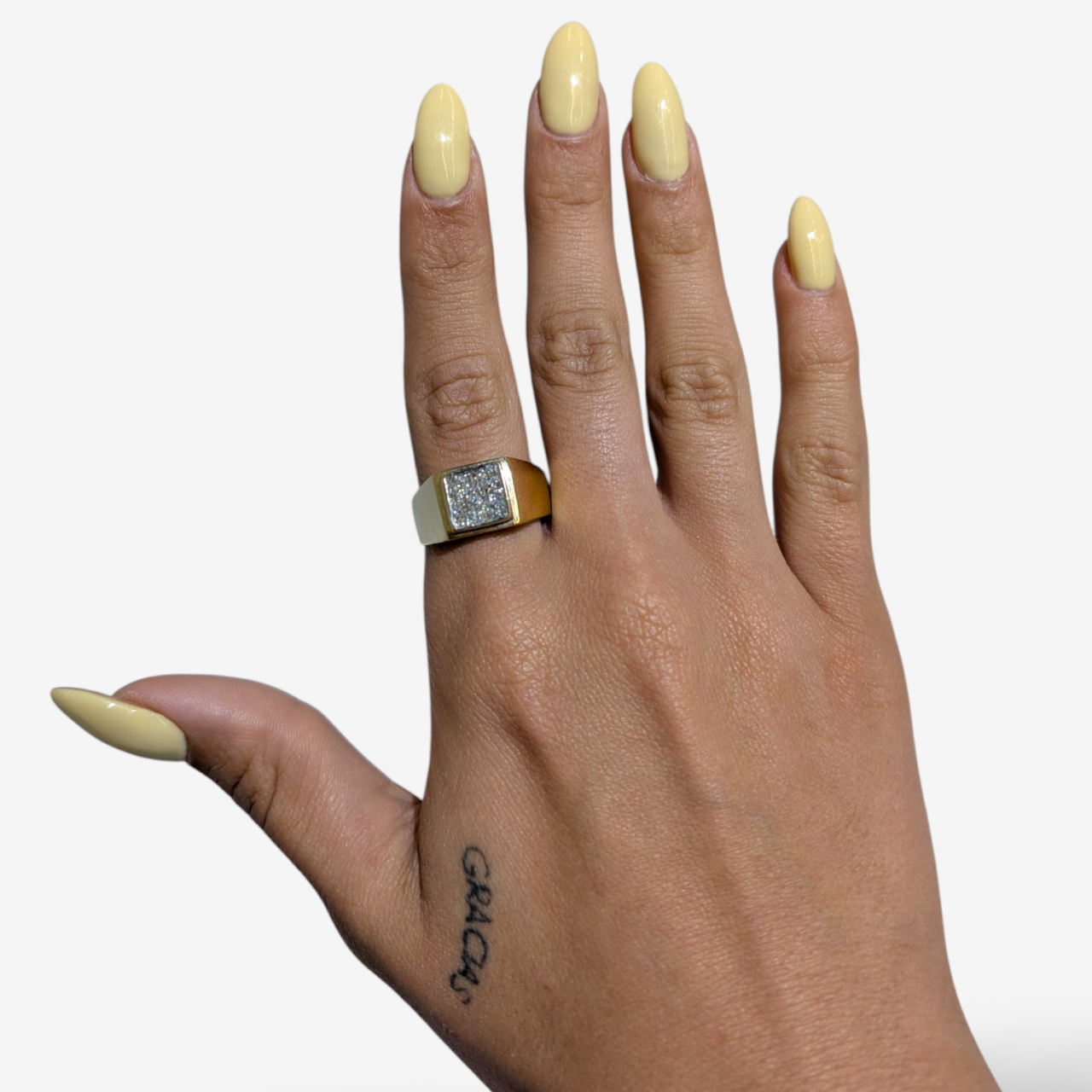 Dimensiones: Diamantes 0.54 Ct; Ancho max 10.7 mm; Cuadrado 9 x 9 mm