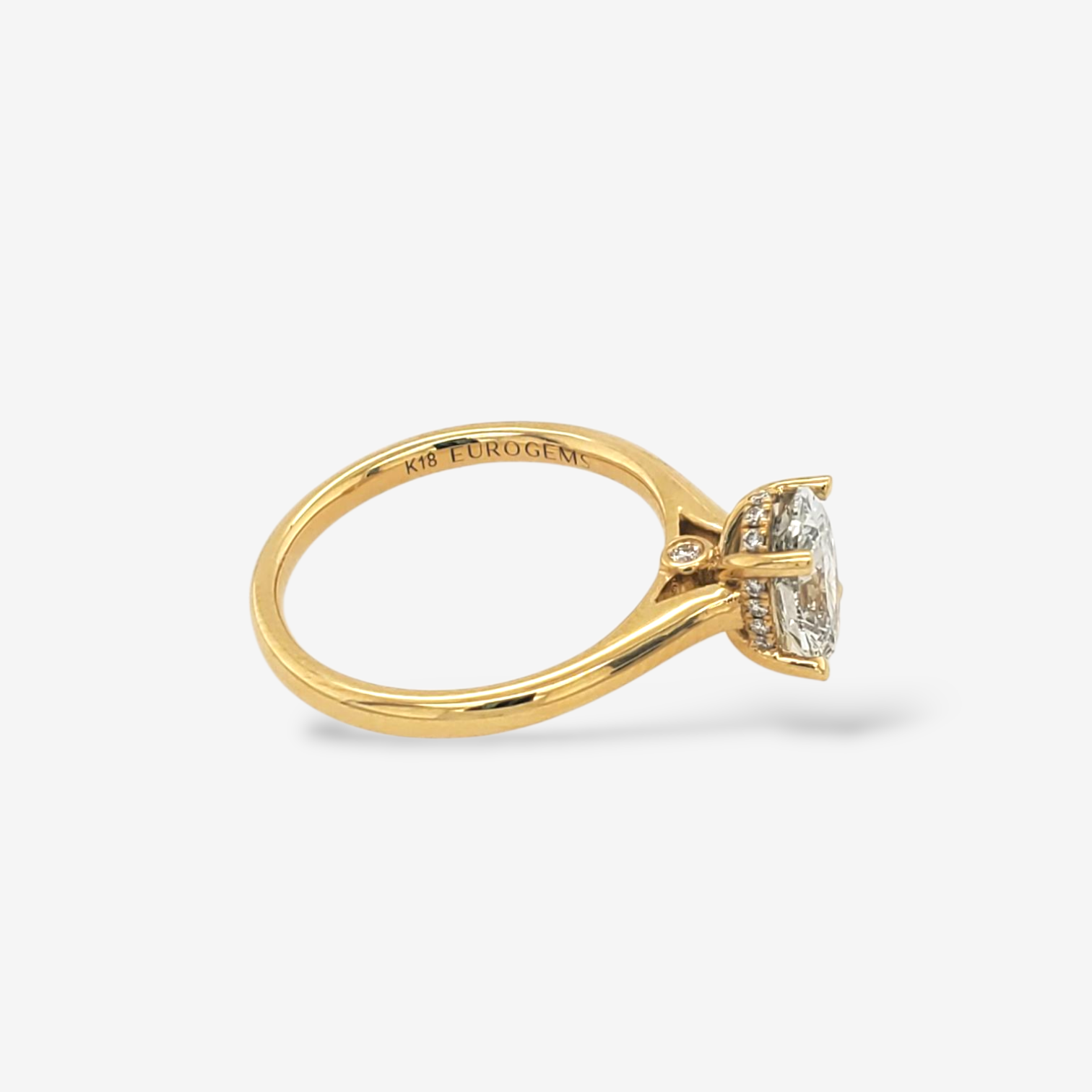 Anillo (1.02 Ct) Compromiso Diamante Labgrown Certificado Oval c/ Cesta de Diamantes Pave – Oro Amarillo 18Kts