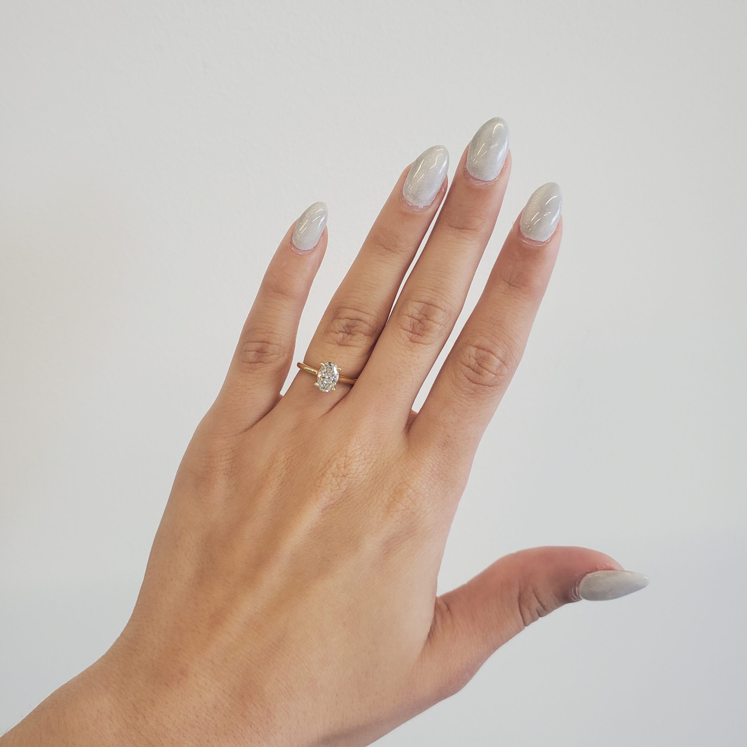 Anillo (1.02 Ct) Compromiso Diamante Labgrown Certificado Oval c/ Cesta de Diamantes Pave – Oro Amarillo 18Kts