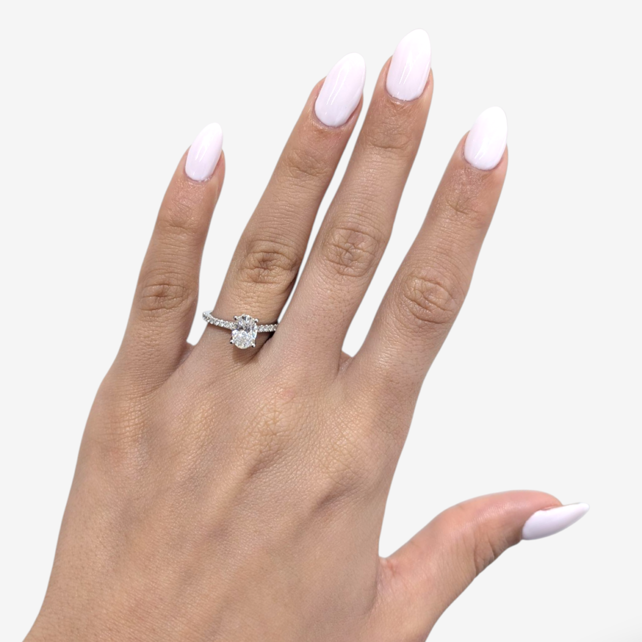 Anillo (1.05 Ct) Compromiso Oval Diamante Labgrown & Aro de Diamantes Pave Naturales (0.10 Ct) – Oro Blanco 14Kts