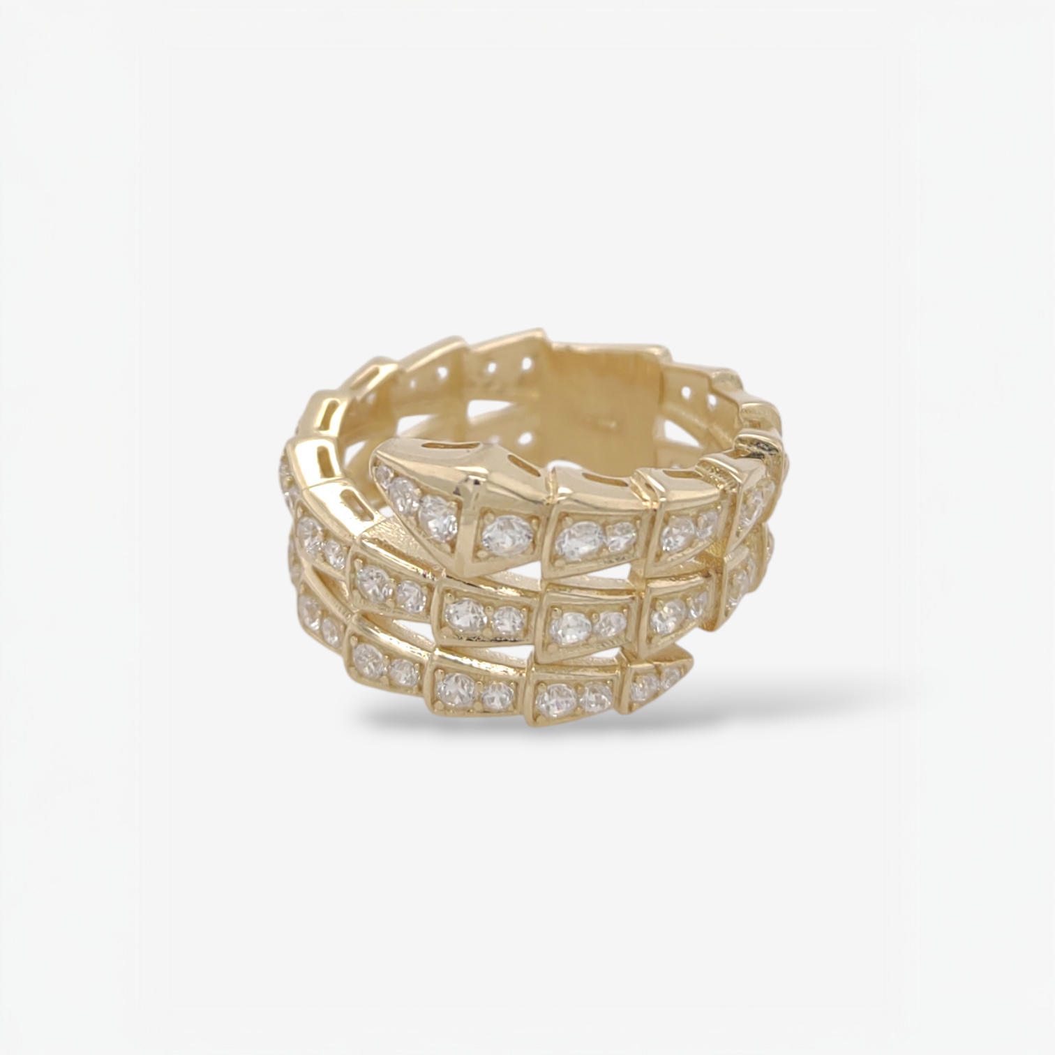 Anillo (12 mm) Serpiente Entorchada c/ Tres Lineas & Zircones Pave – Oro Amarillo 14Kts