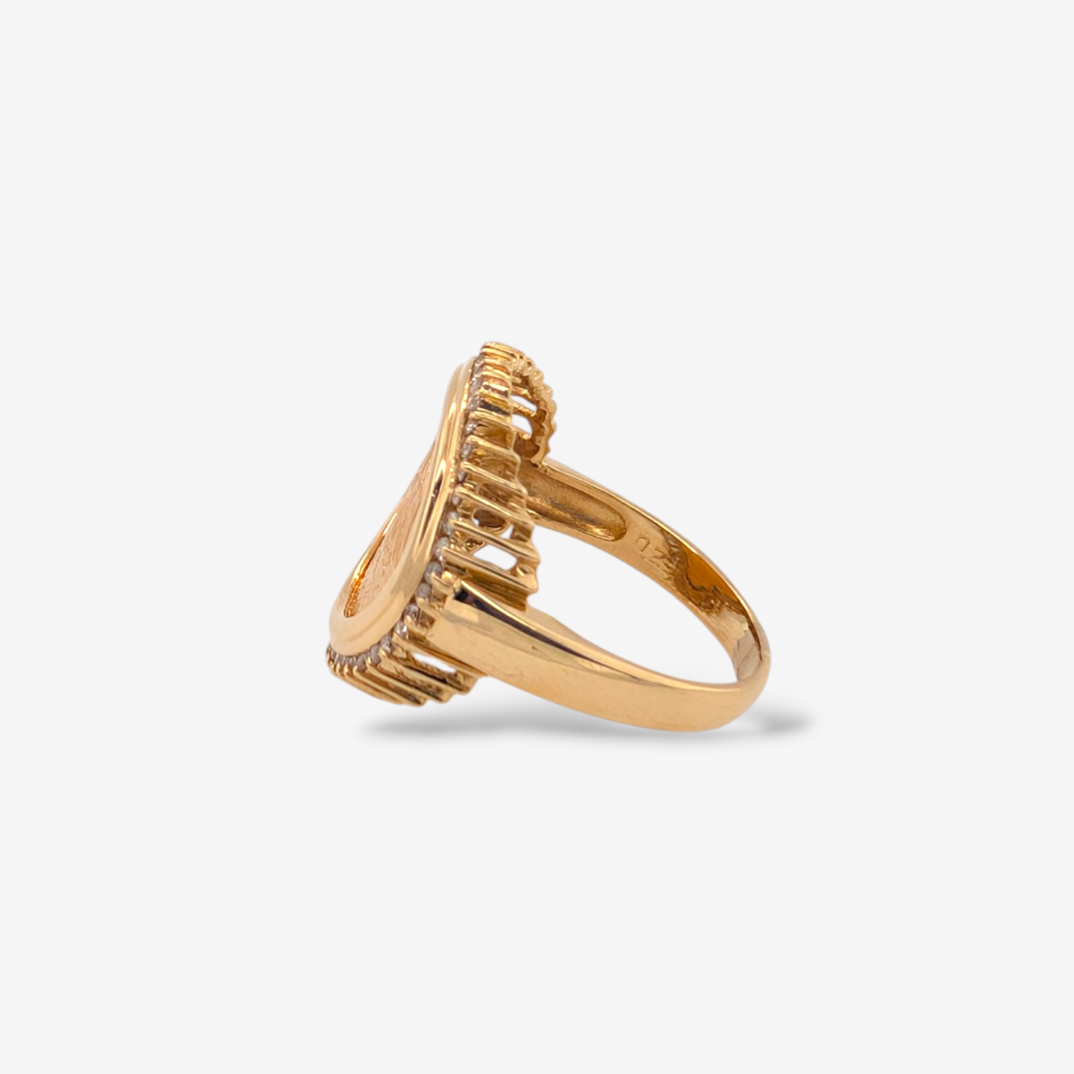 Anillo (17 mm) c/ Moneda 2 Pesos (Mexicanos) c/ Marco de Diamantes Naturales (0.23 Ct) – Oro Amarillo 18Kts