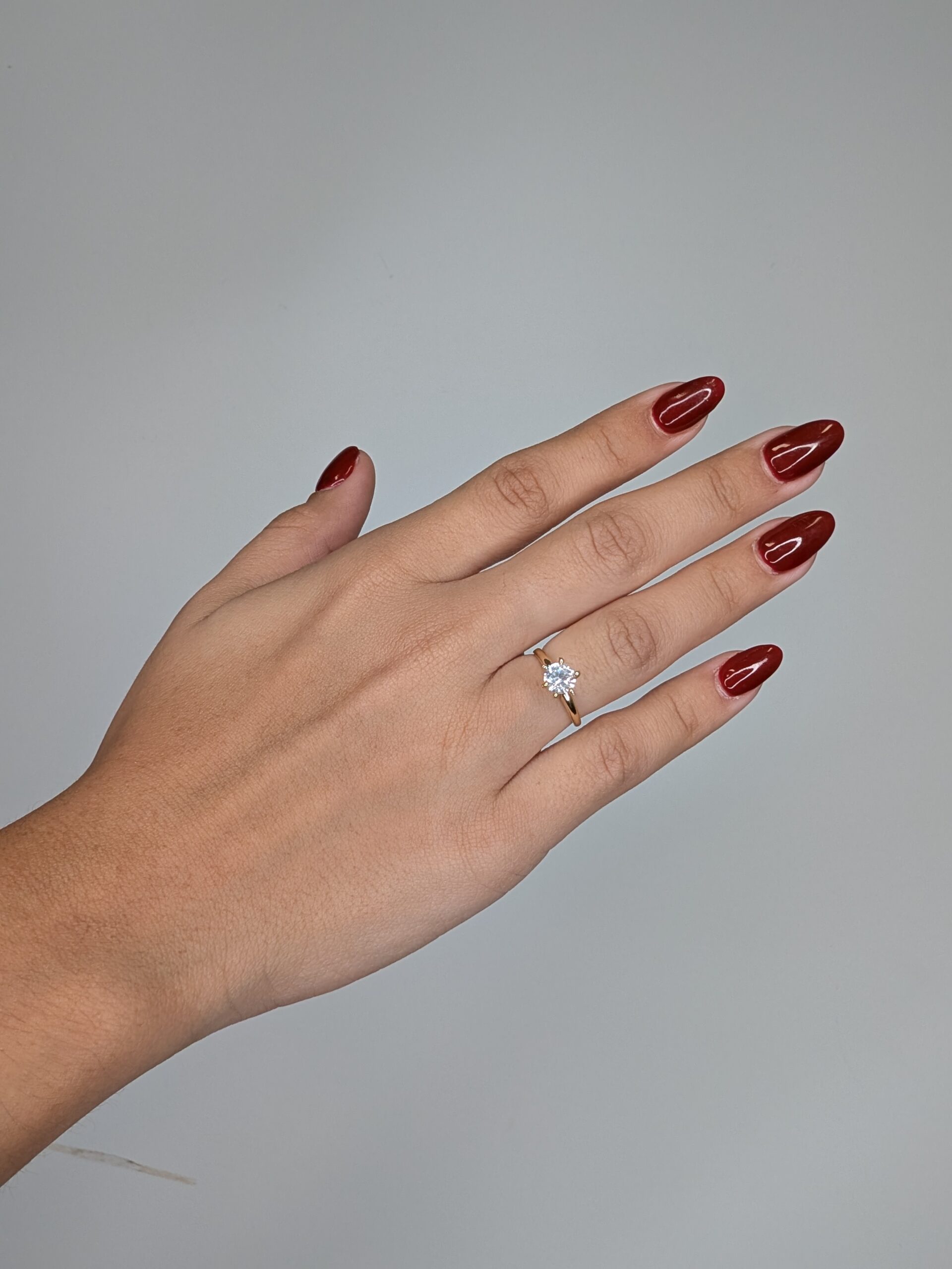 Anillo (2.4 mm) Compromiso c/ Aro Liso & 6 Prongs c/ Zircon Central – Oro Amarillo 14Kts