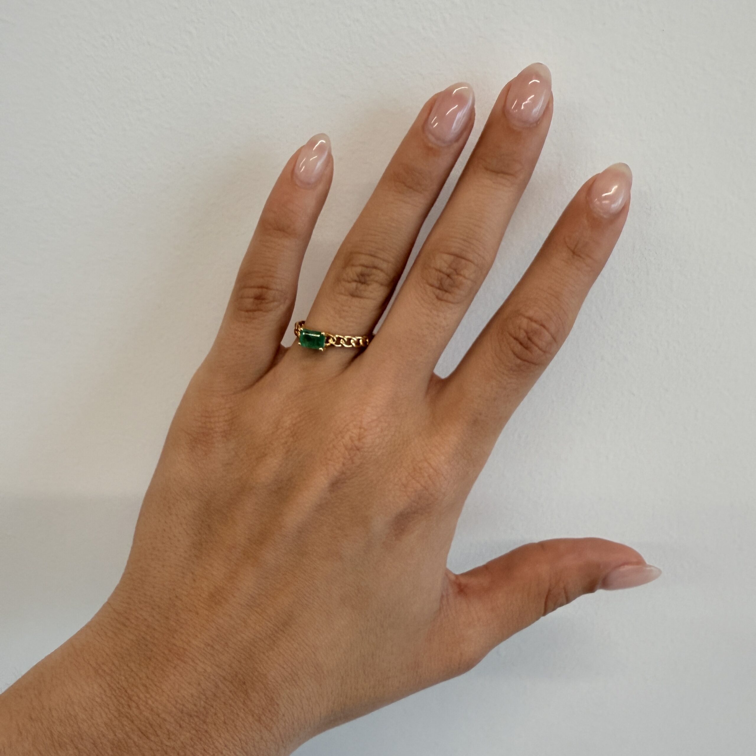Anillo (3 mm) Esmeralda Rectangular (0.40 Ct) & Aro Tejido Cuban Link – Oro Amarillo 18Kts