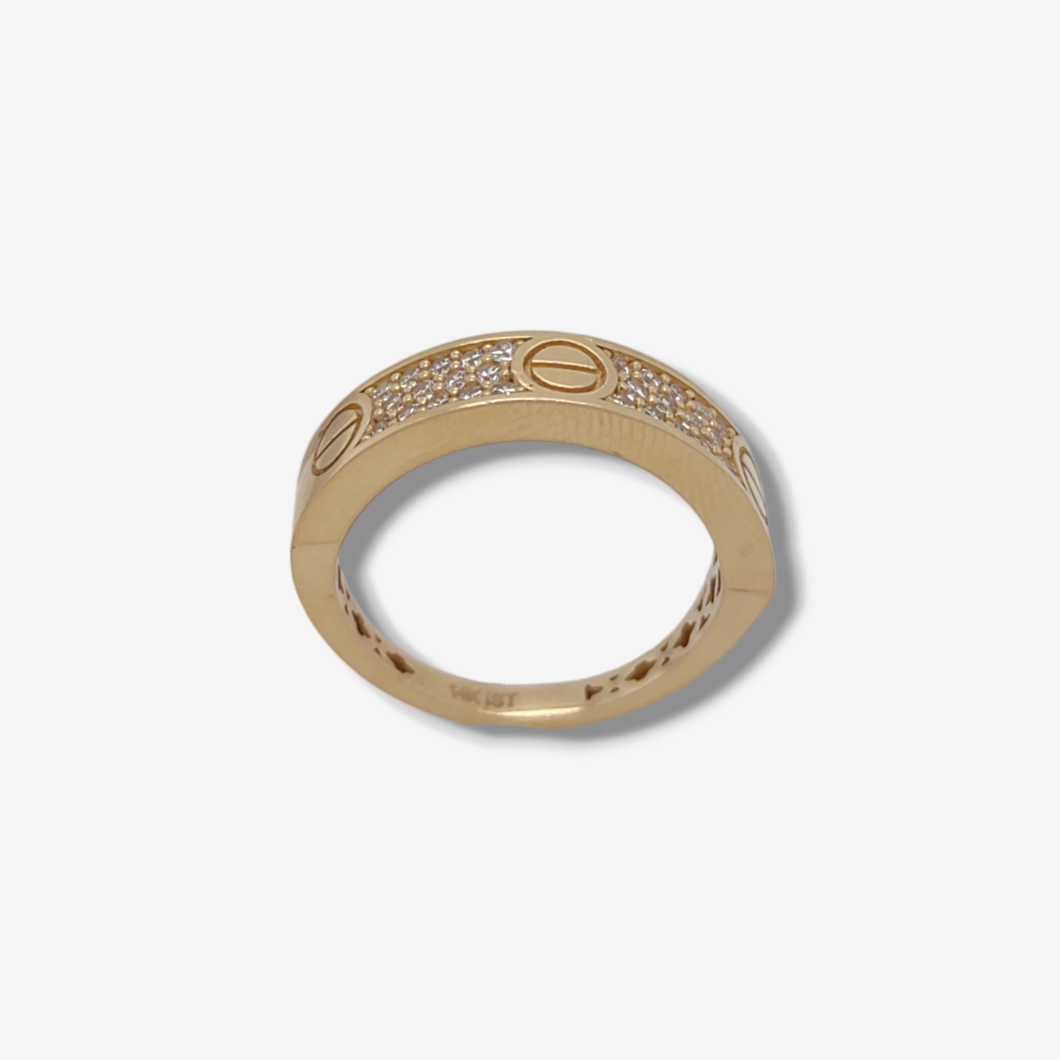 Anillo (5 mm) Zircones Pave & Circulos Estampados – Oro Amarillo 14Kts