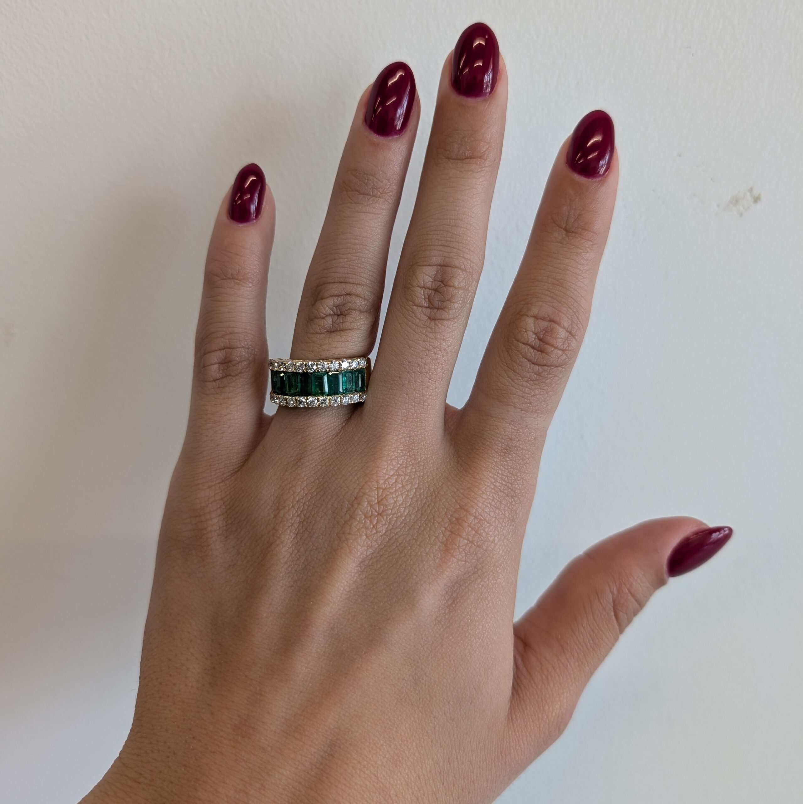 Anillo Cintillo Esmeraldas (2.17 Ct) & Diamantes Pave (0.78 Ct)- Oro Amarillo 14Kts
