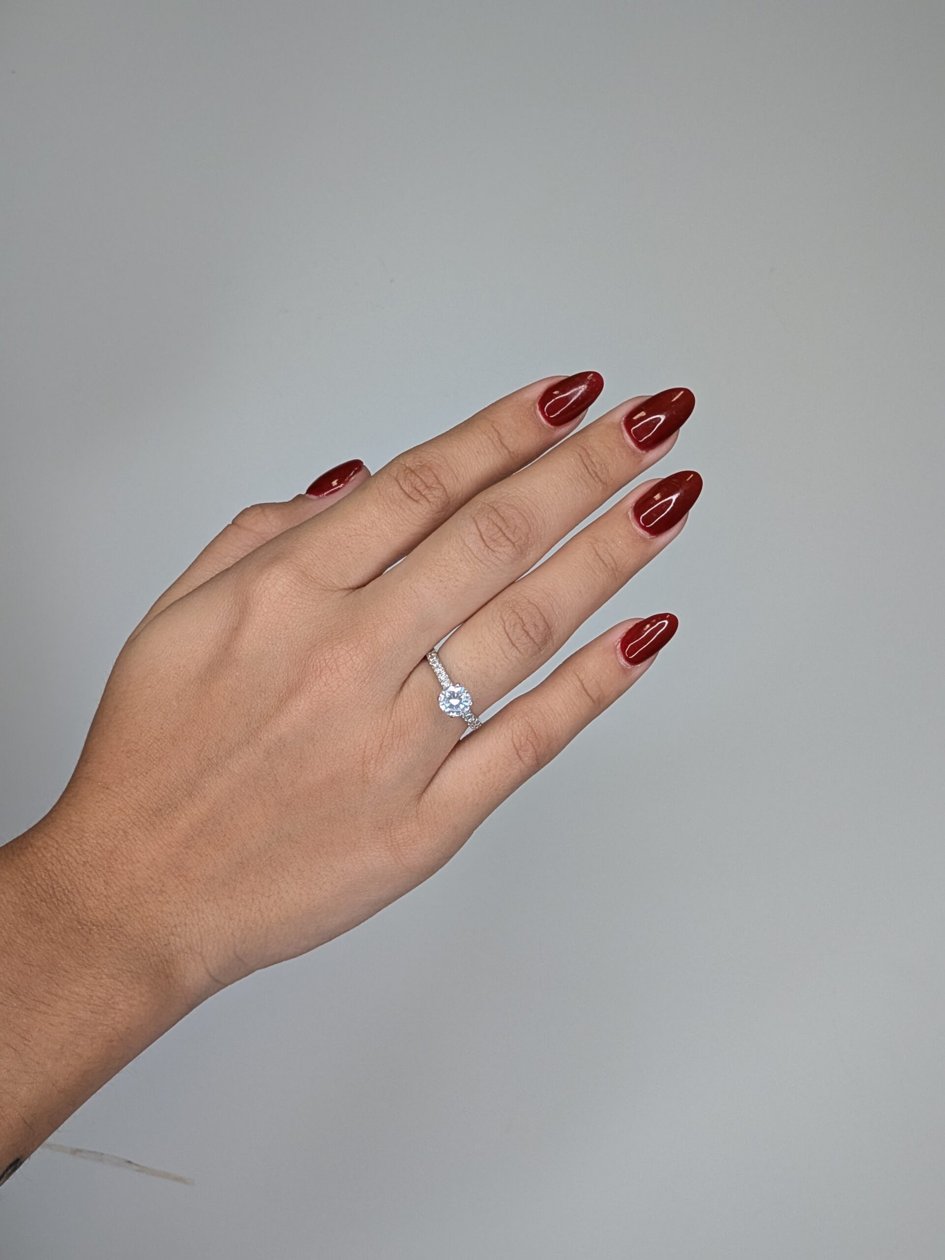 Anillo Compromiso Solitario en Aro Media Cana – Oro Blanco 18Kts
