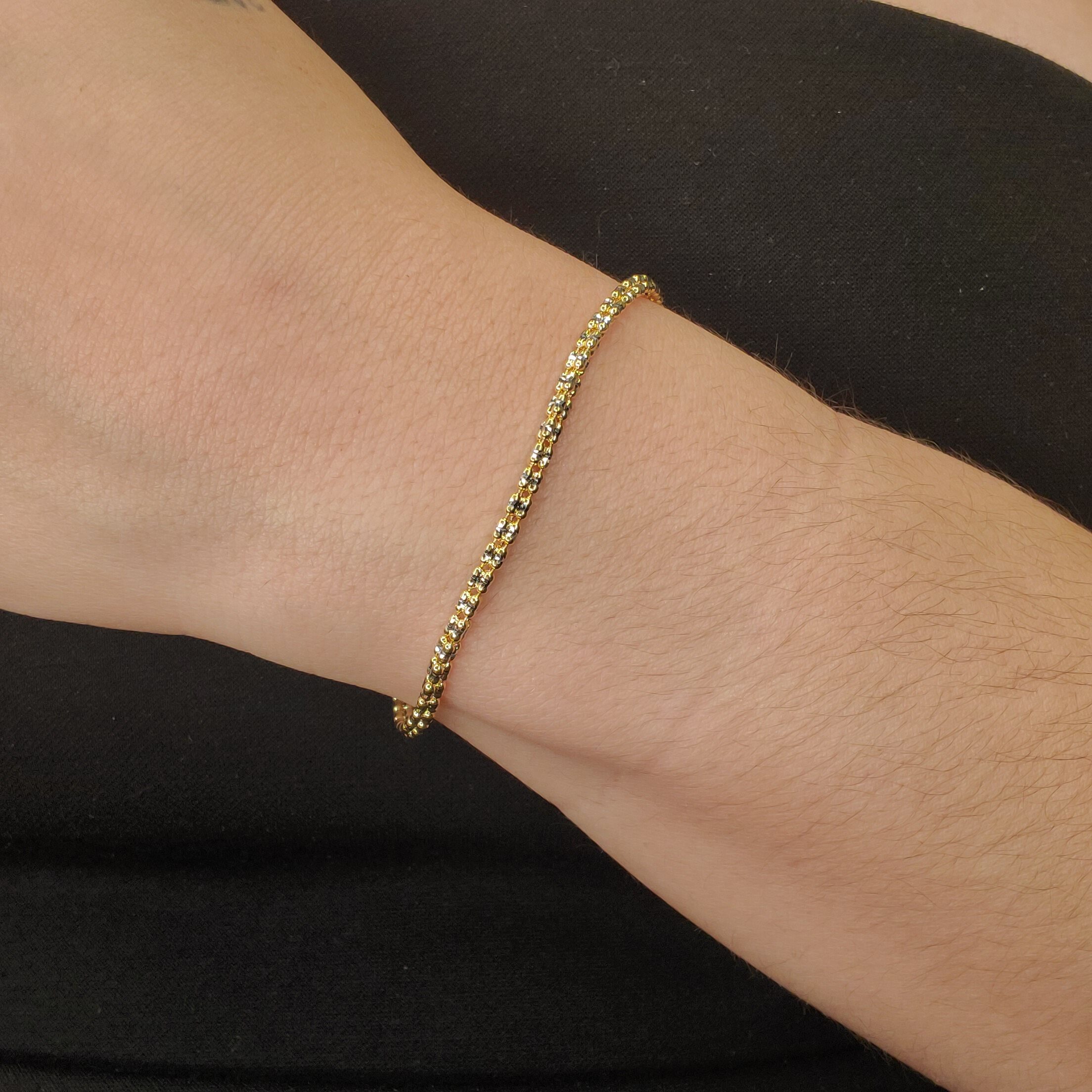 Brazalete (17 cm) Tejido Hielo c/ Cierre Lobster (2.50 mm) – Oro Dos Tonos 18Kts