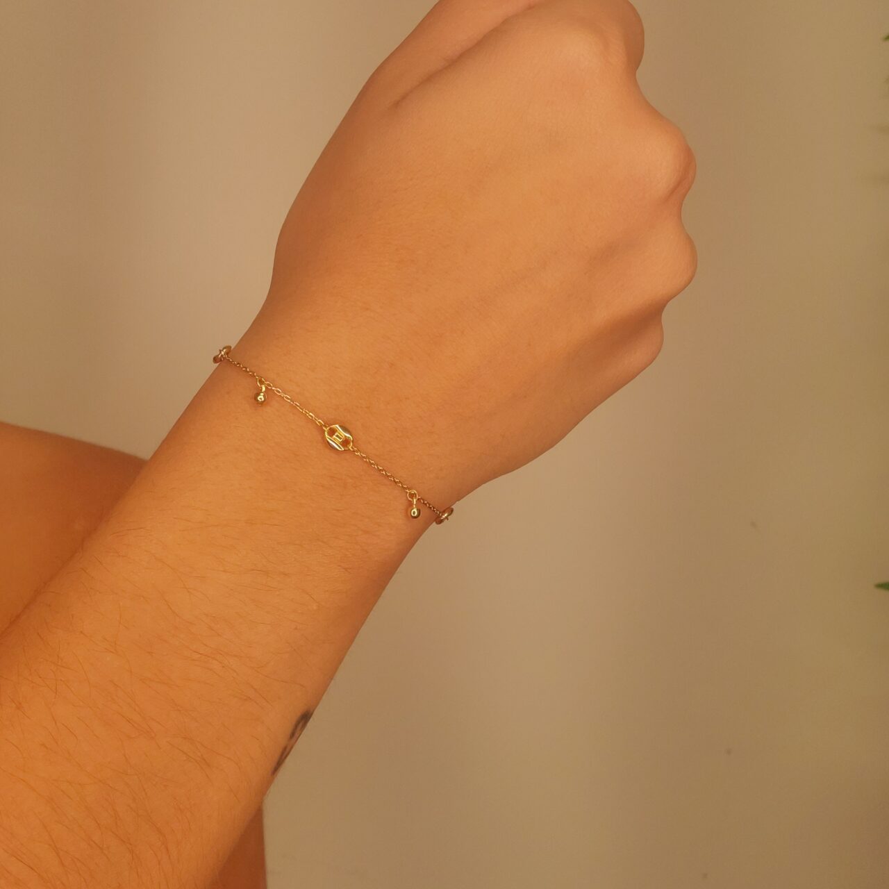 Brazalete de Hilo Estrella con Diamantes (0.05 Ct) Pave – Oro Amarillo 14 Kts
