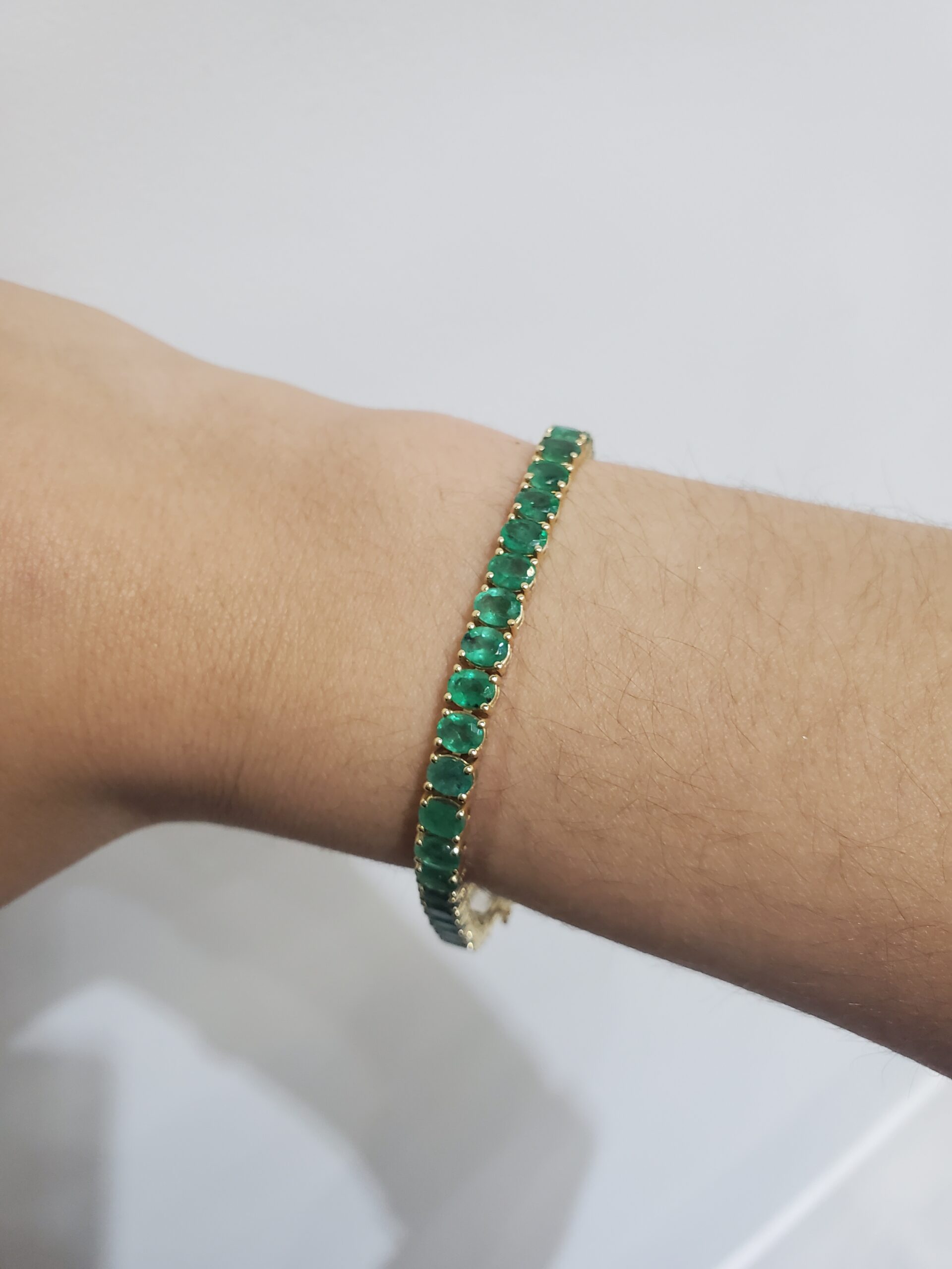 Brazalete (18.5 cm) Tennis c/ Esmeraldas Ovaladas 4 Prongs (12.14 Ct) c/ Cierre Caja – Oro Amarillo 14Kts
