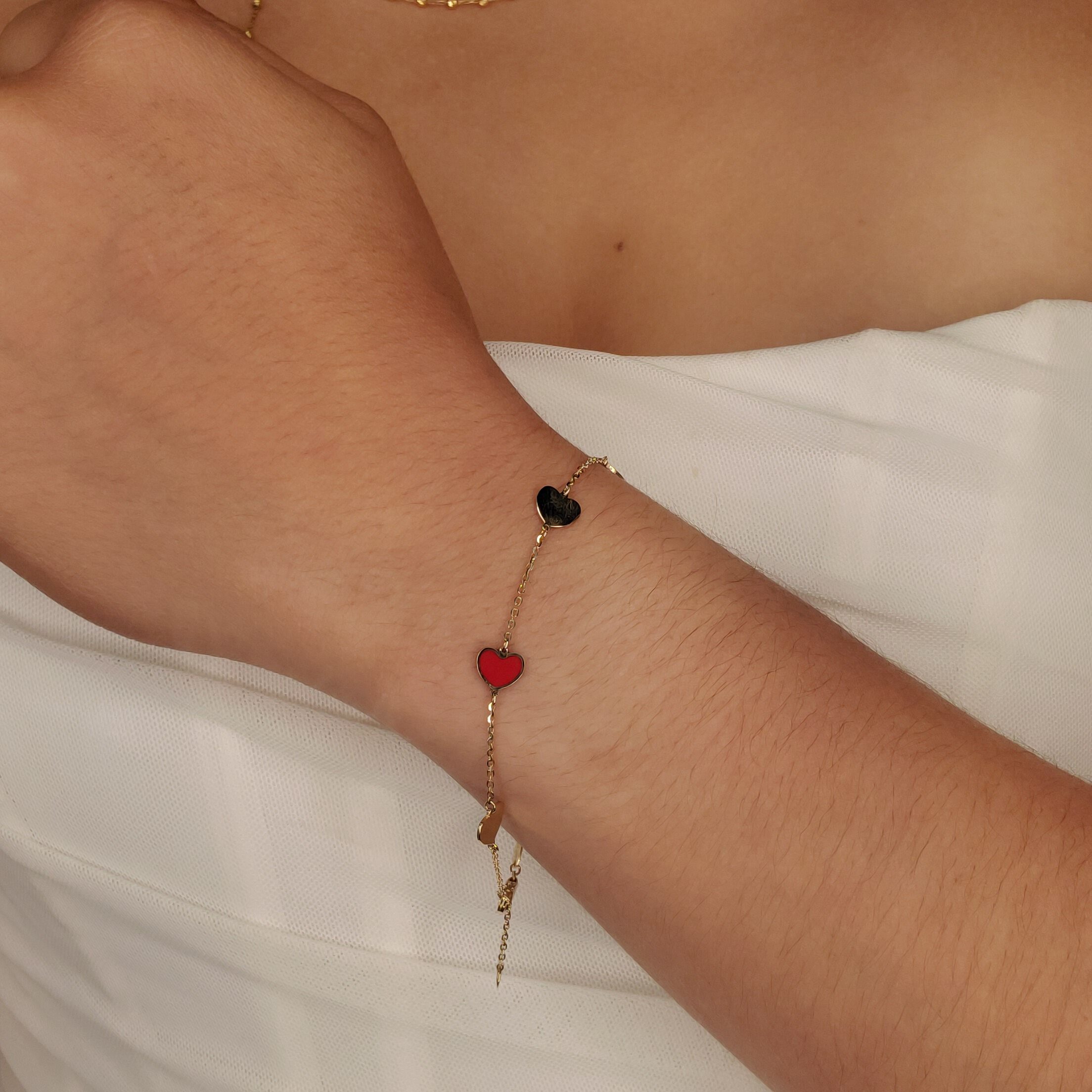Dimensiones: Largo 19.5 c/ Ajuste a 18 cm; Corazones 7 x 5.6 mm
