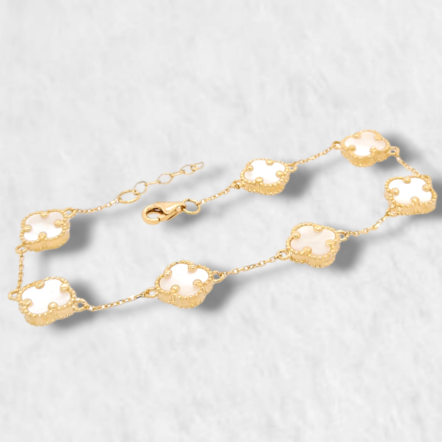 Brazalete (19.5 cm) Treboles Madreperla – Oro Amarillo 14Kts
