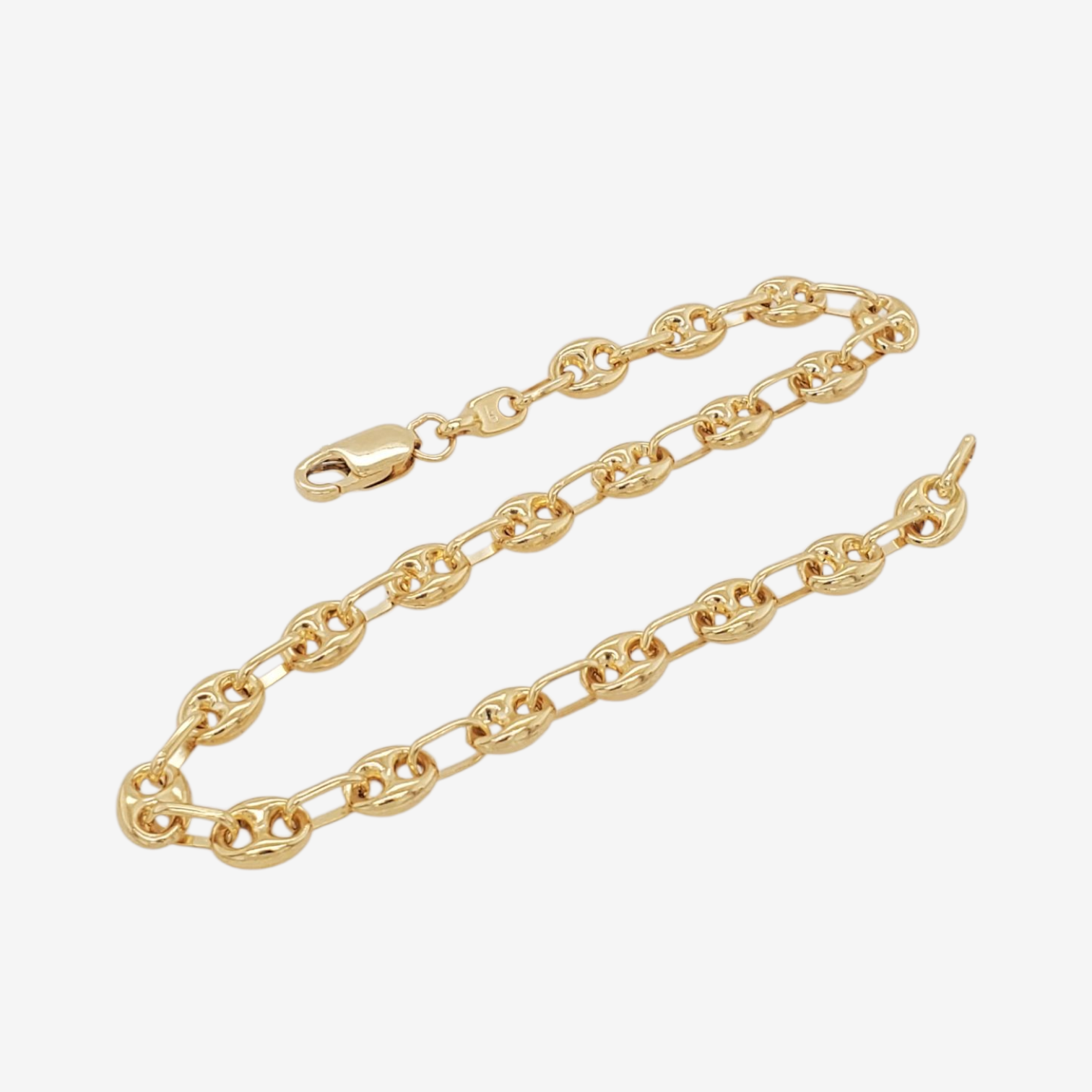 Brazalete (19 cm) Tejido Mariner Puff (4.8 mm) c/ Cierre Lobster – Oro Amarillo 18Kts
