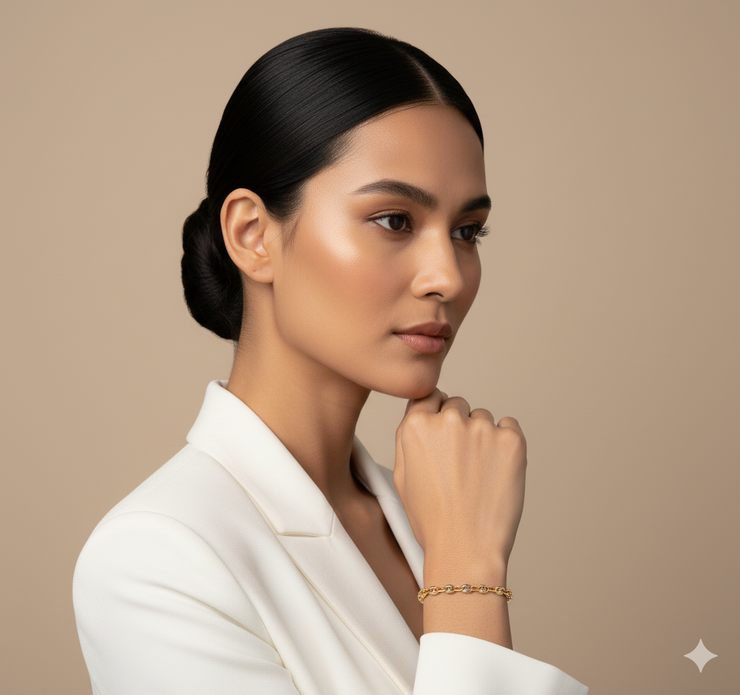 Brazalete (19 cm) Tejido Mariner Puff (4.8 mm) c/ Cierre Lobster – Oro Tres Tonos 18Kts