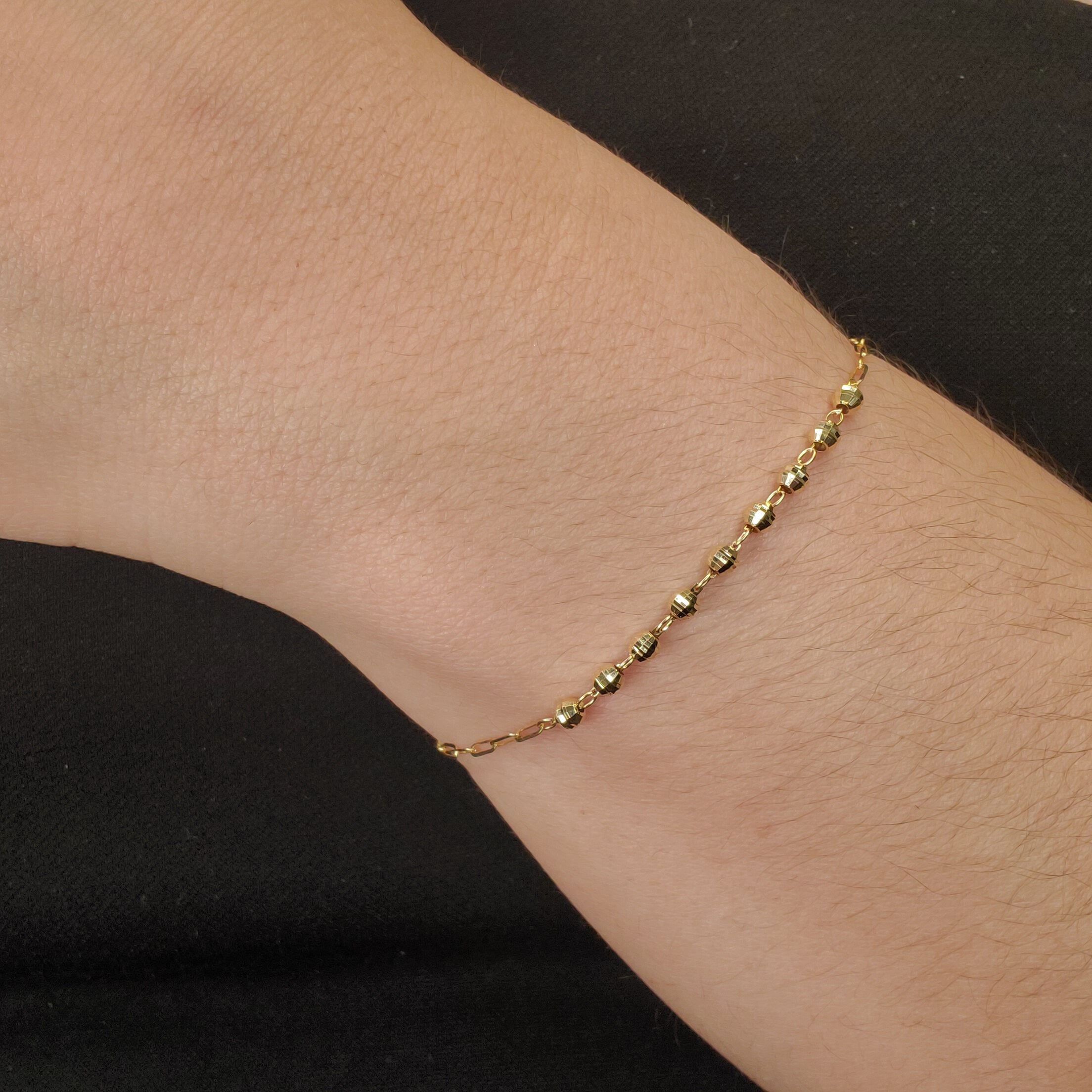 Brazalete (19 cm) Tejido Paperclip c/ Esferas Diamantadas & Cierre Spring – Oro Amarillo 14Kts