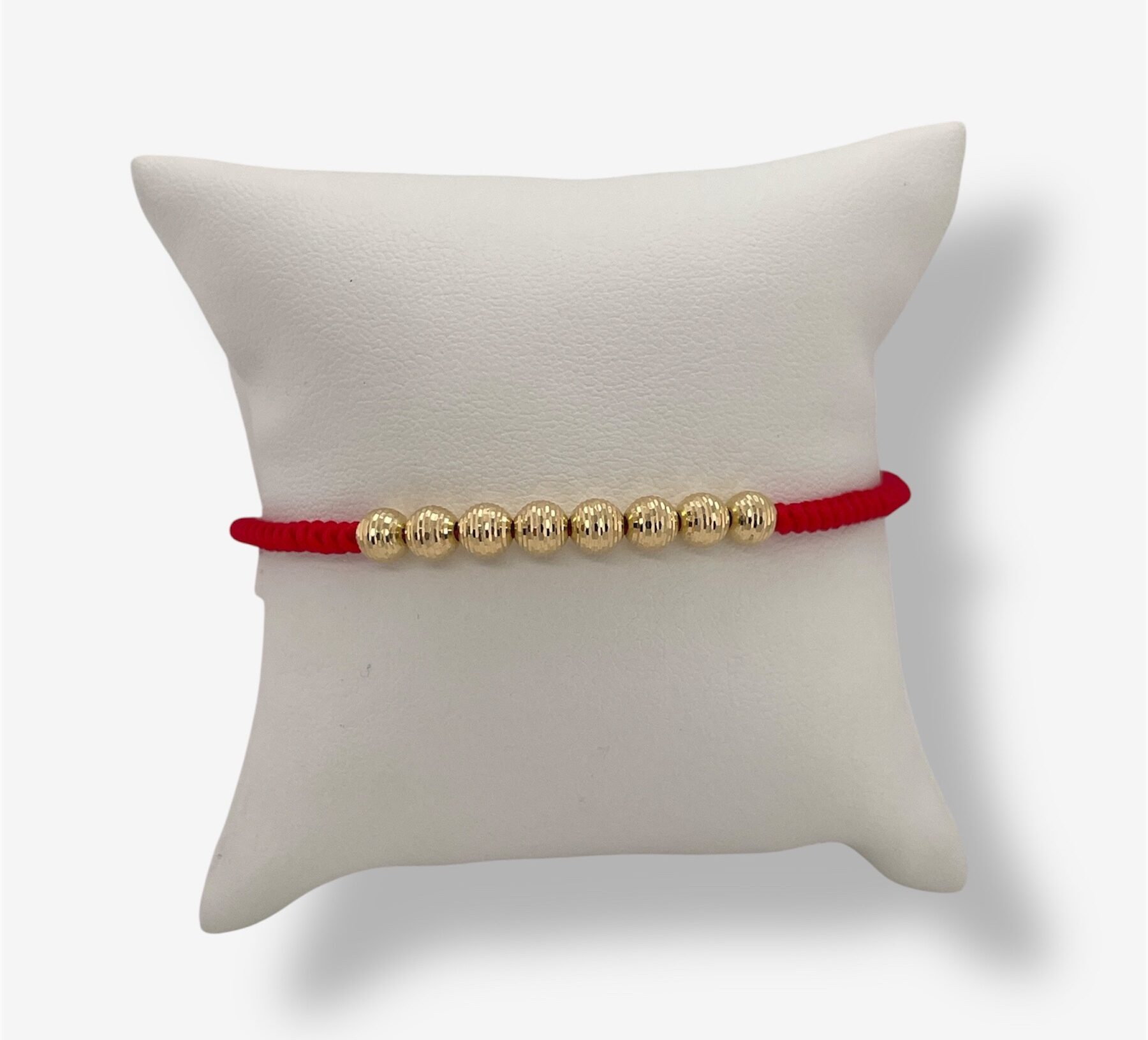 Brazalete (5 mm) Hilo Chino Tejido c/ 10 Esferas Diamantadas – Oro Amarillo 18Kts