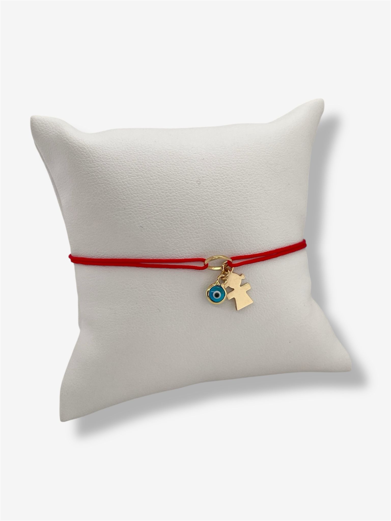 Brazalete (7 x 9 mm) Hilo Chino c/ Ojo Turco & Nin@ – Oro Amarillo 18Kts
