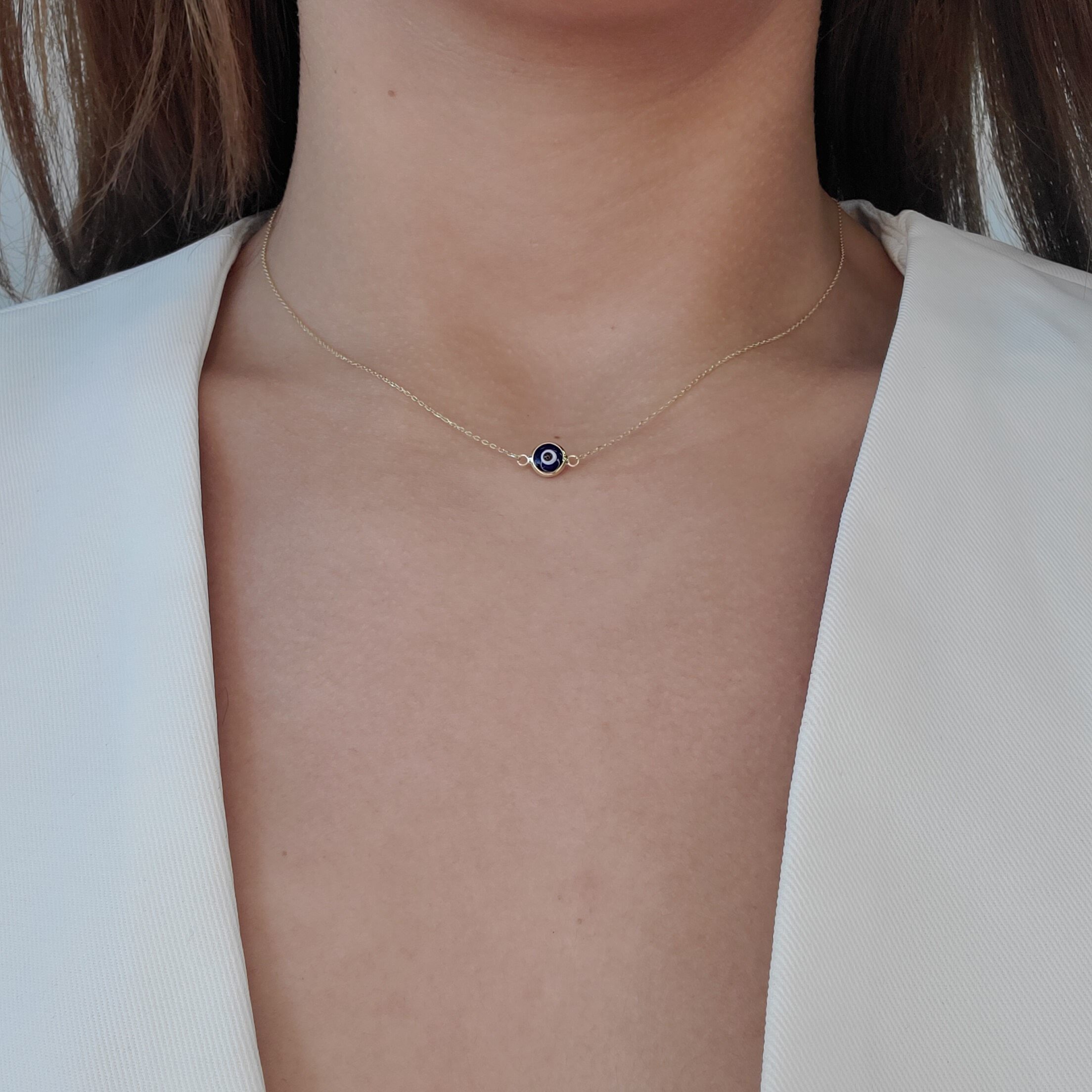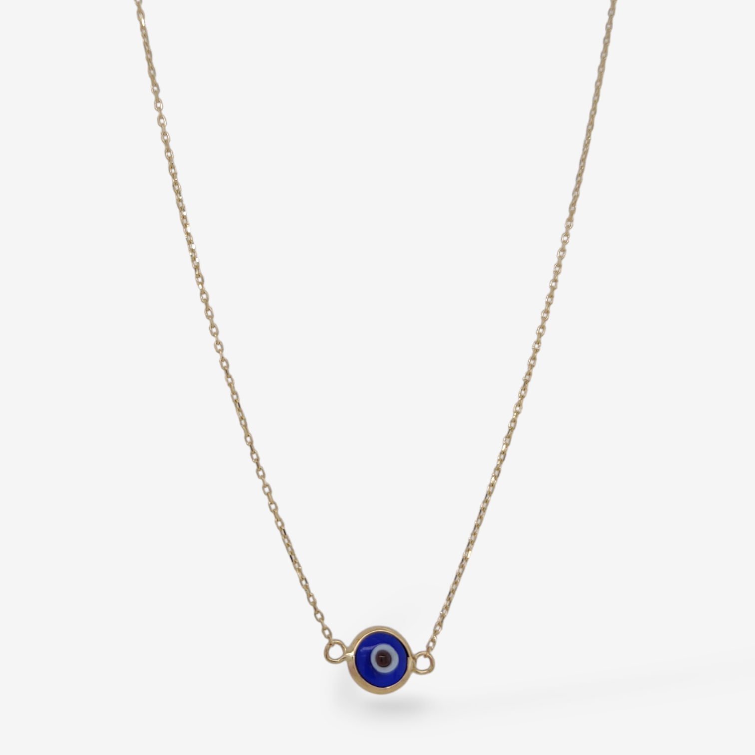 Cadena (42.5 cm) Fina c/ Ojo Turco Azul c/ Cierre Salvavida – Oro Amarillo 14Kts