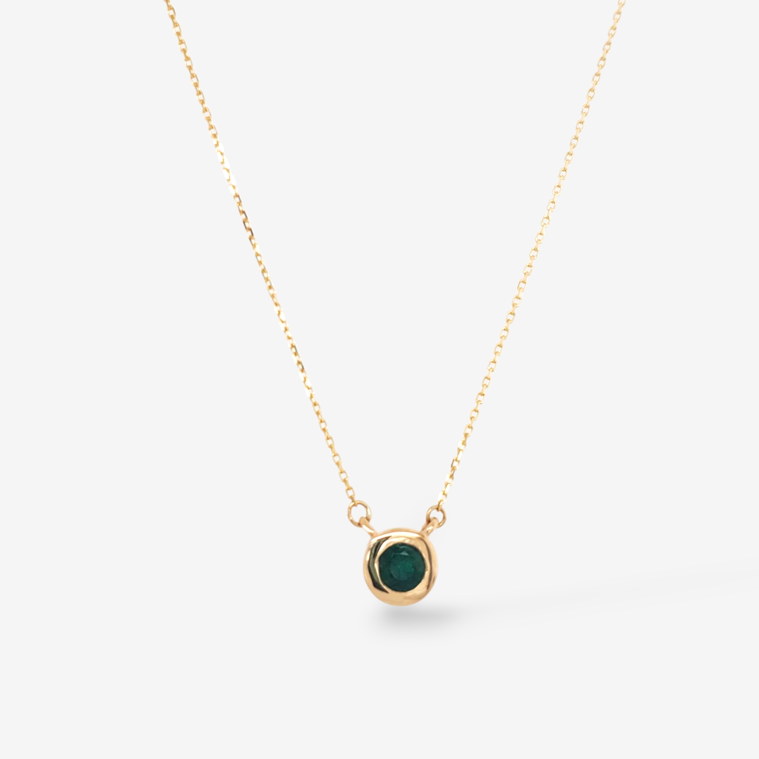 Cadena (42 cm) Fina Cable c/ Esmeralda Redonda Engaste “Dona” c/ Cierre Spring – Oro Amarillo 14Kts