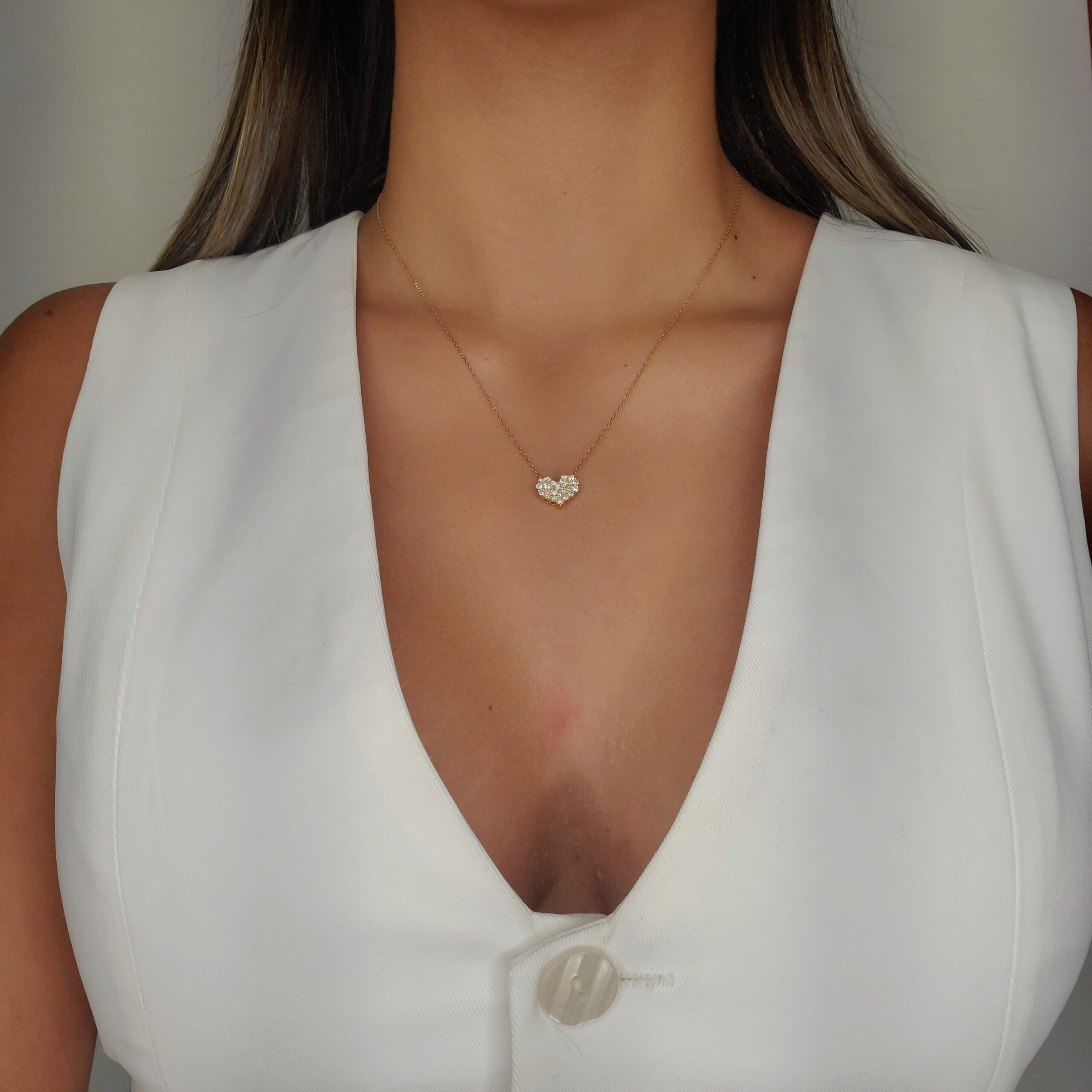 Cadena (45 cm) Fina Cable c/ Corazon Mediano & Diamante Pave (0.50 Ct) c/ Cierre Spring – Oro Amarillo 18Kts