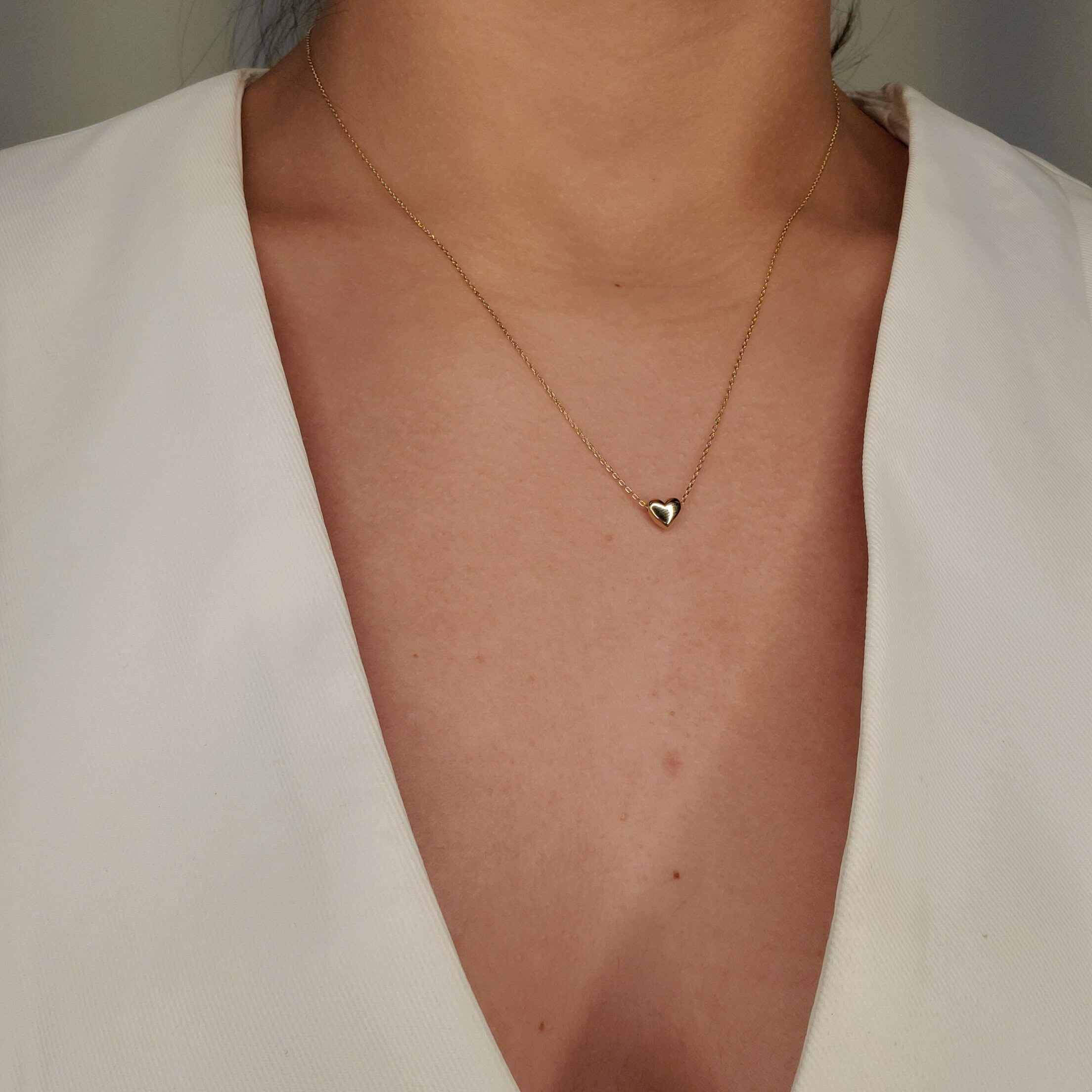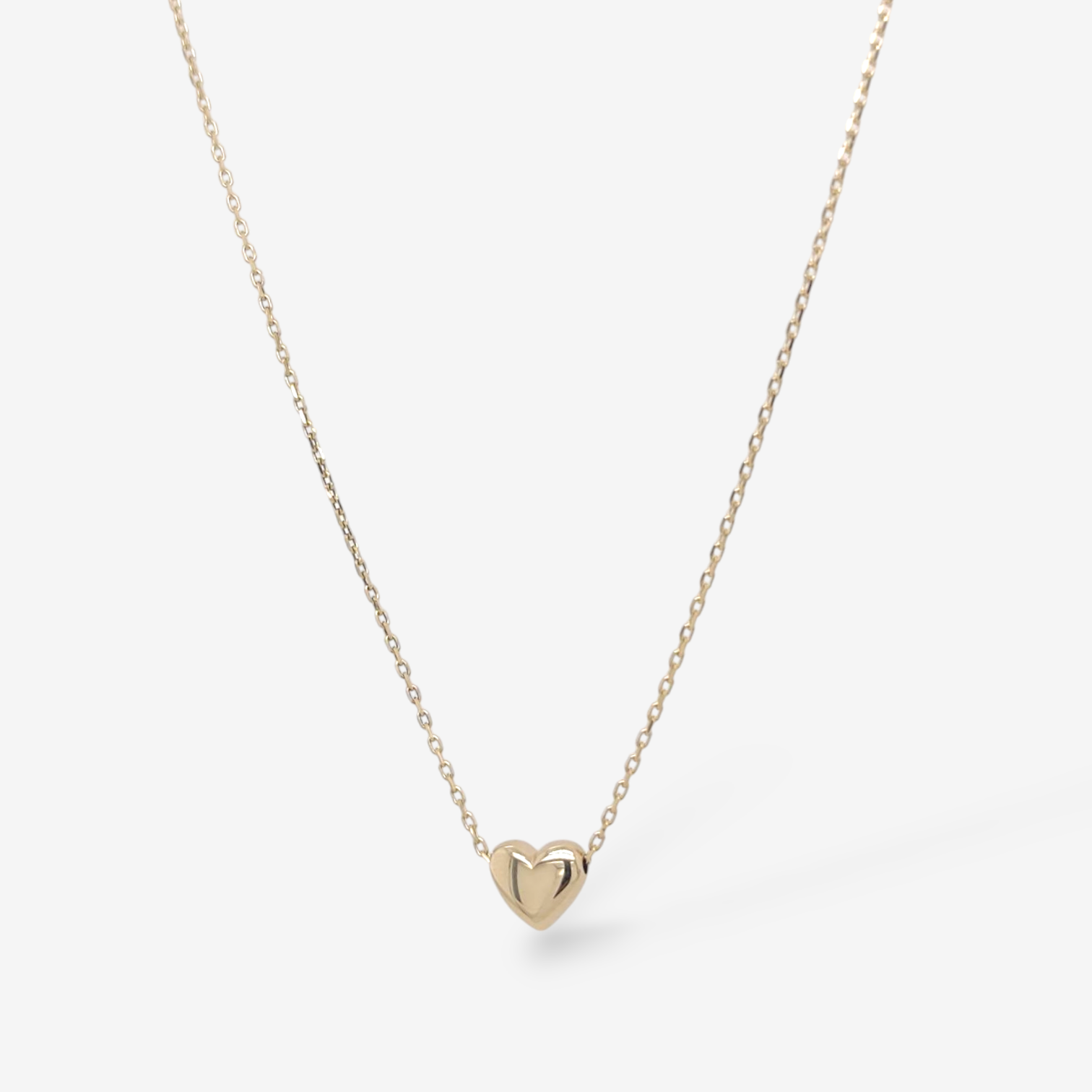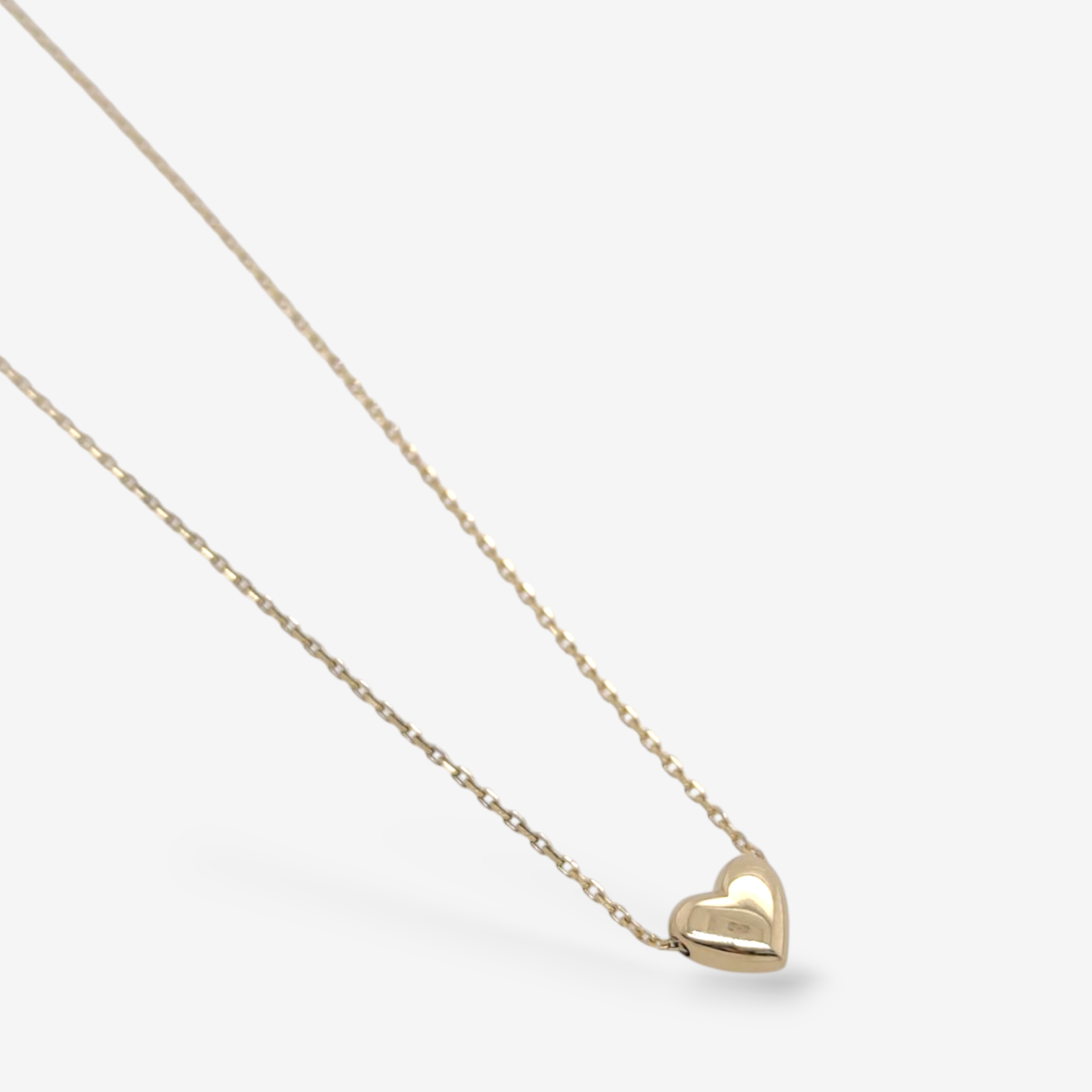 Cadena (45 cm) Fina Cable c/ Corazon Pequeno Puff Pasante & Cierre Spring – Oro Amarillo 14Kts