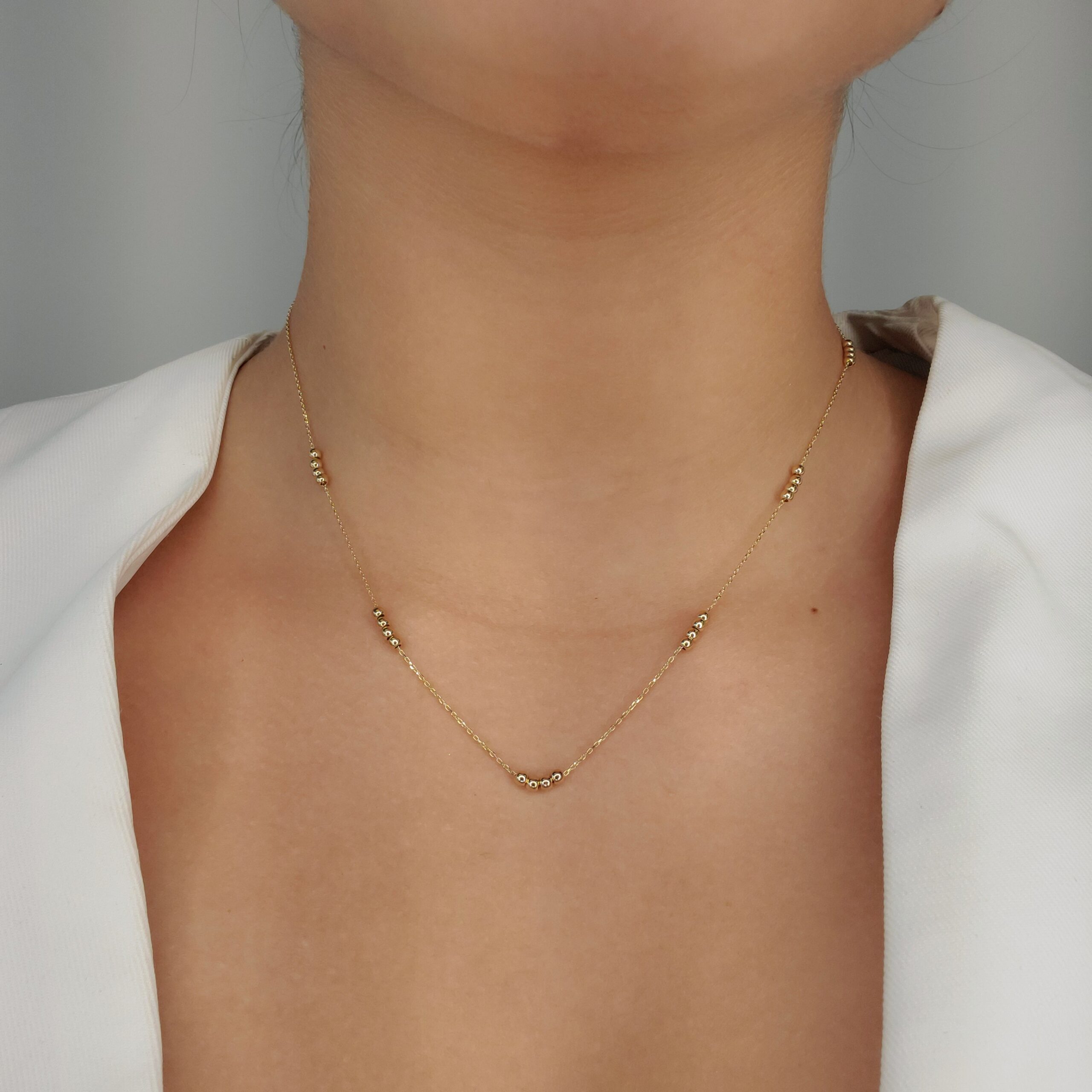 Cadena (45 cm) Fina Cable c/ Esferas (2.5 mm) Lisas c/ Cierre Spring – Oro Amarillo 14Kts
