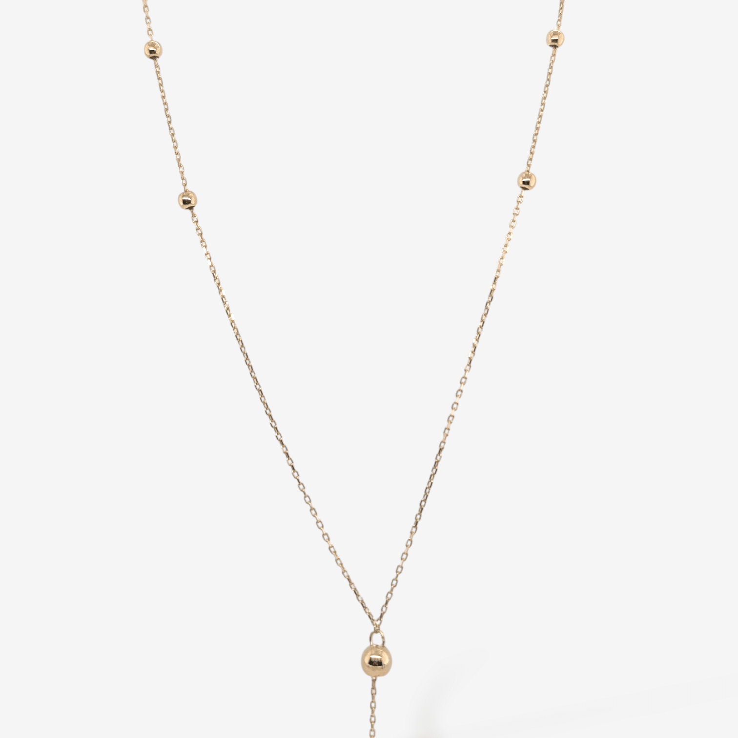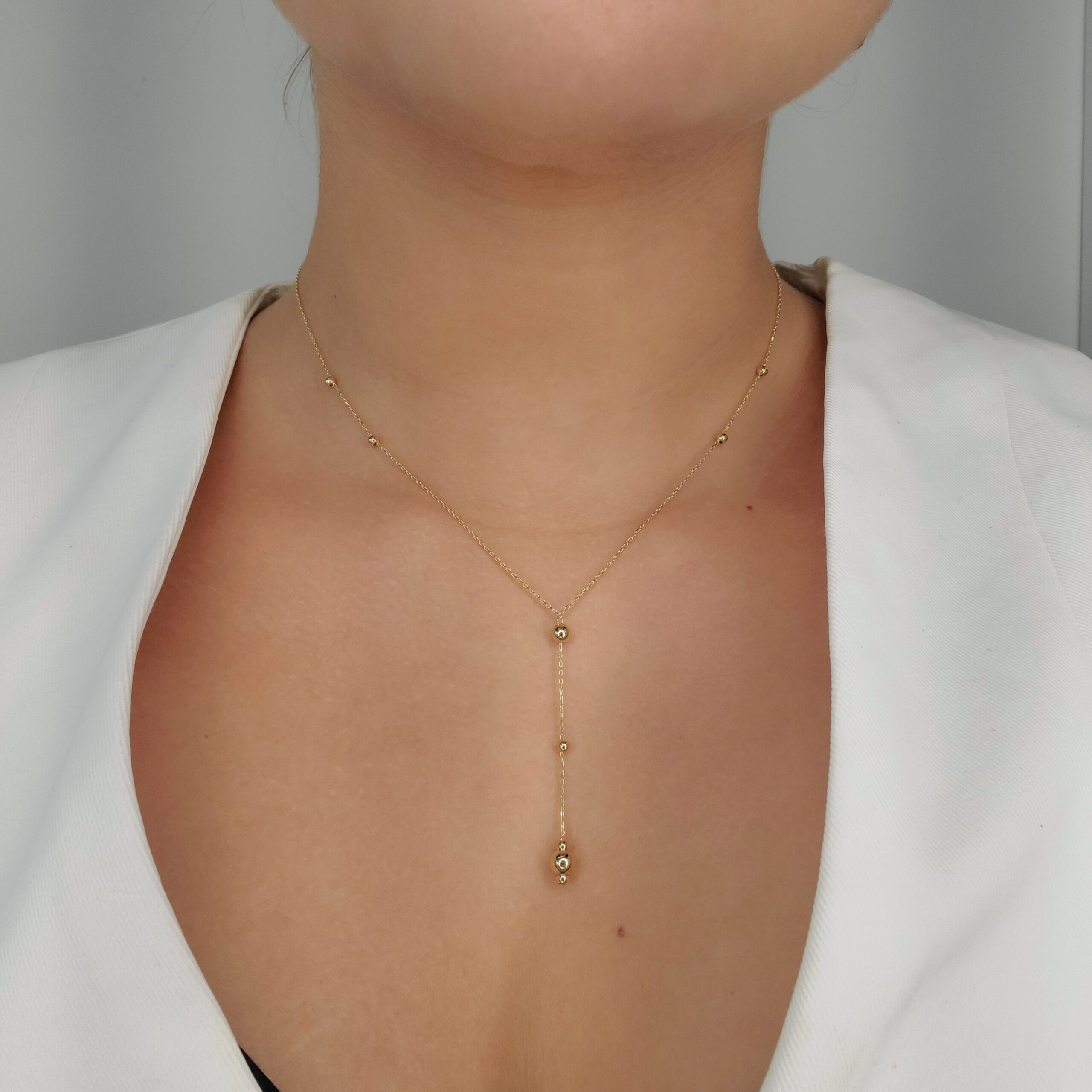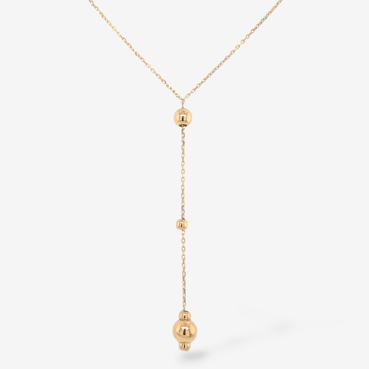 Cadena (45 cm) Fina Lariat c/ Esferas Distintos Tamanos & Cierre Spring – Oro Amarillo 14Kts