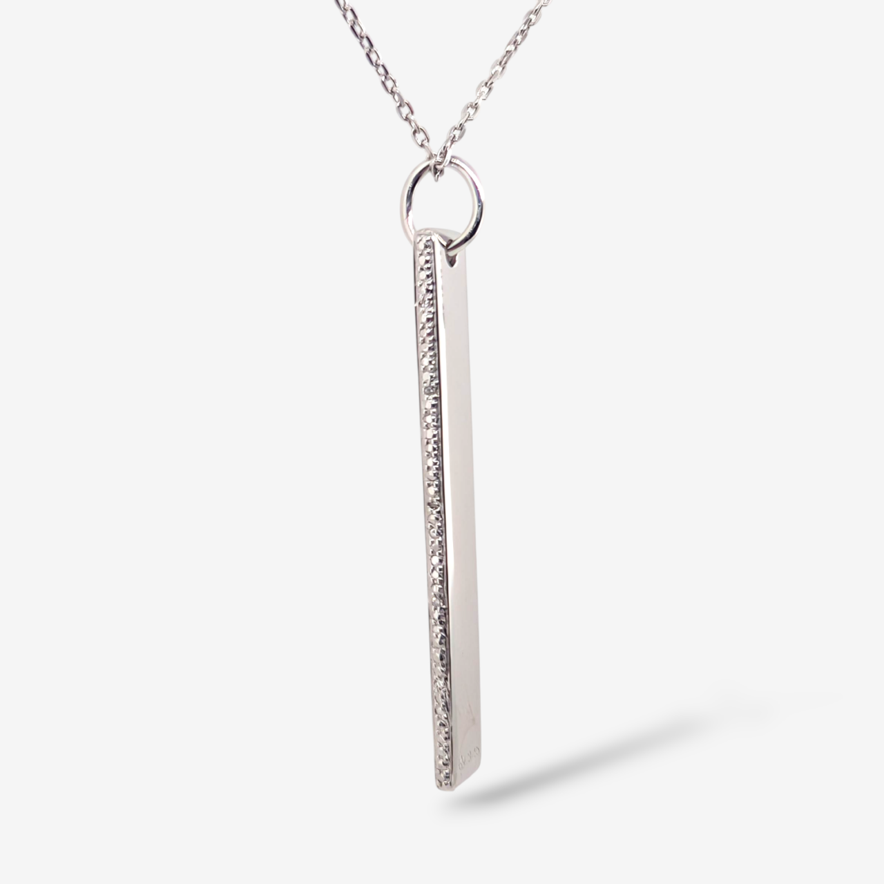 Cadena (60 cm) Fina Cable Ajustable c/ Placa Rectangular (6.5 x 42.5 mm) c/ Diamantes en los Bordes (0.04 Ct) – Plata