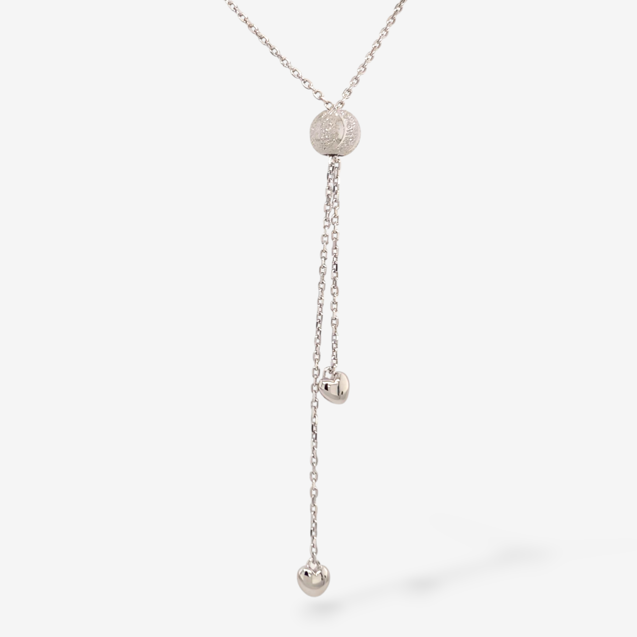 Dimensiones: Largo 40 cm + 5 cm Extension; Love 8.5 x 24.5 mm; Material: Plata & Bano de Rodio