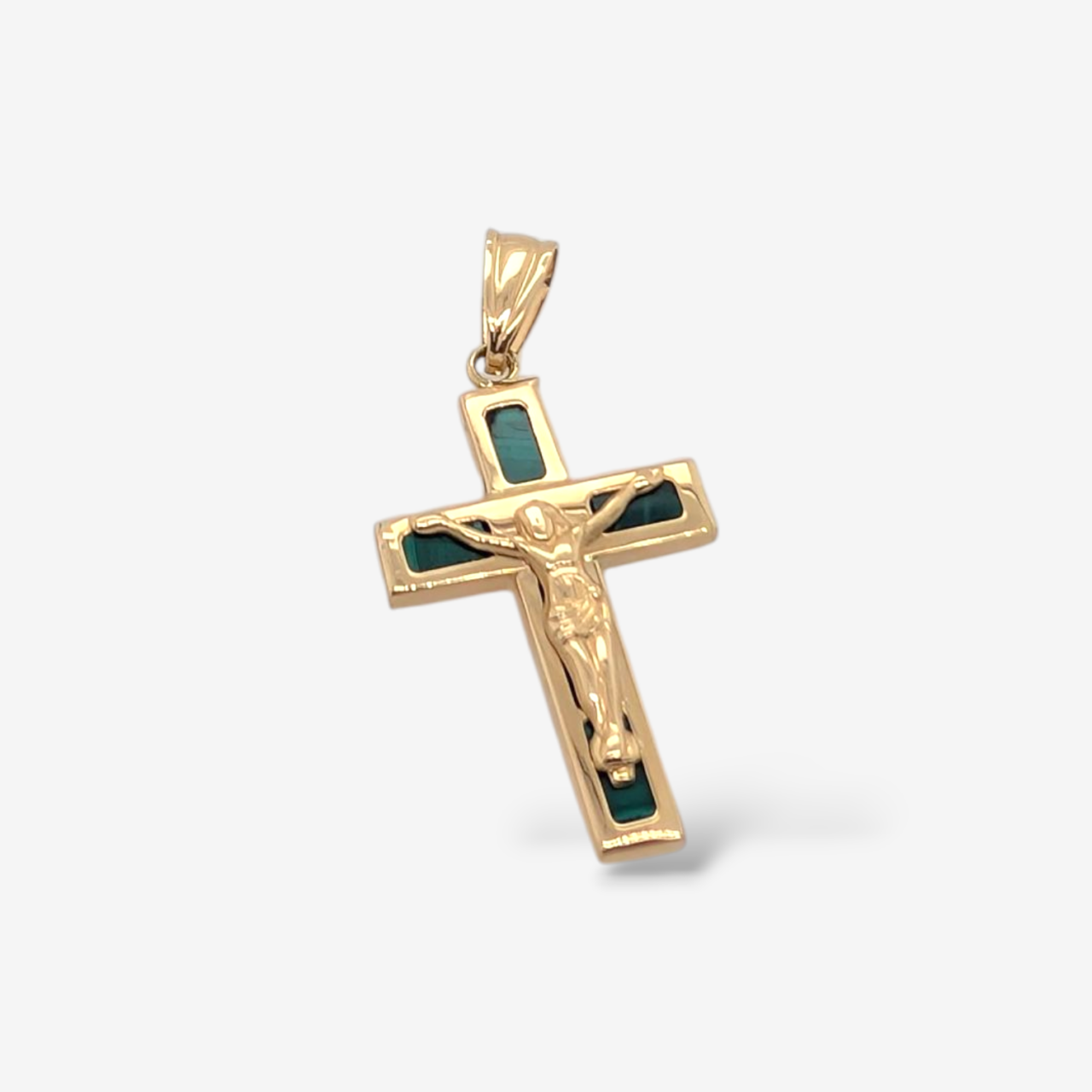 Crucifijo (15 x 23 mm) c/ Malaquita – Oro Amarillo 18Kts