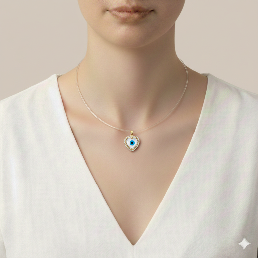 Dije (13 x 14 mm) Corazon Nacar c/ Ojo Turco & Marco dee Zircones Pave – Oro Amarillo 14Kts
