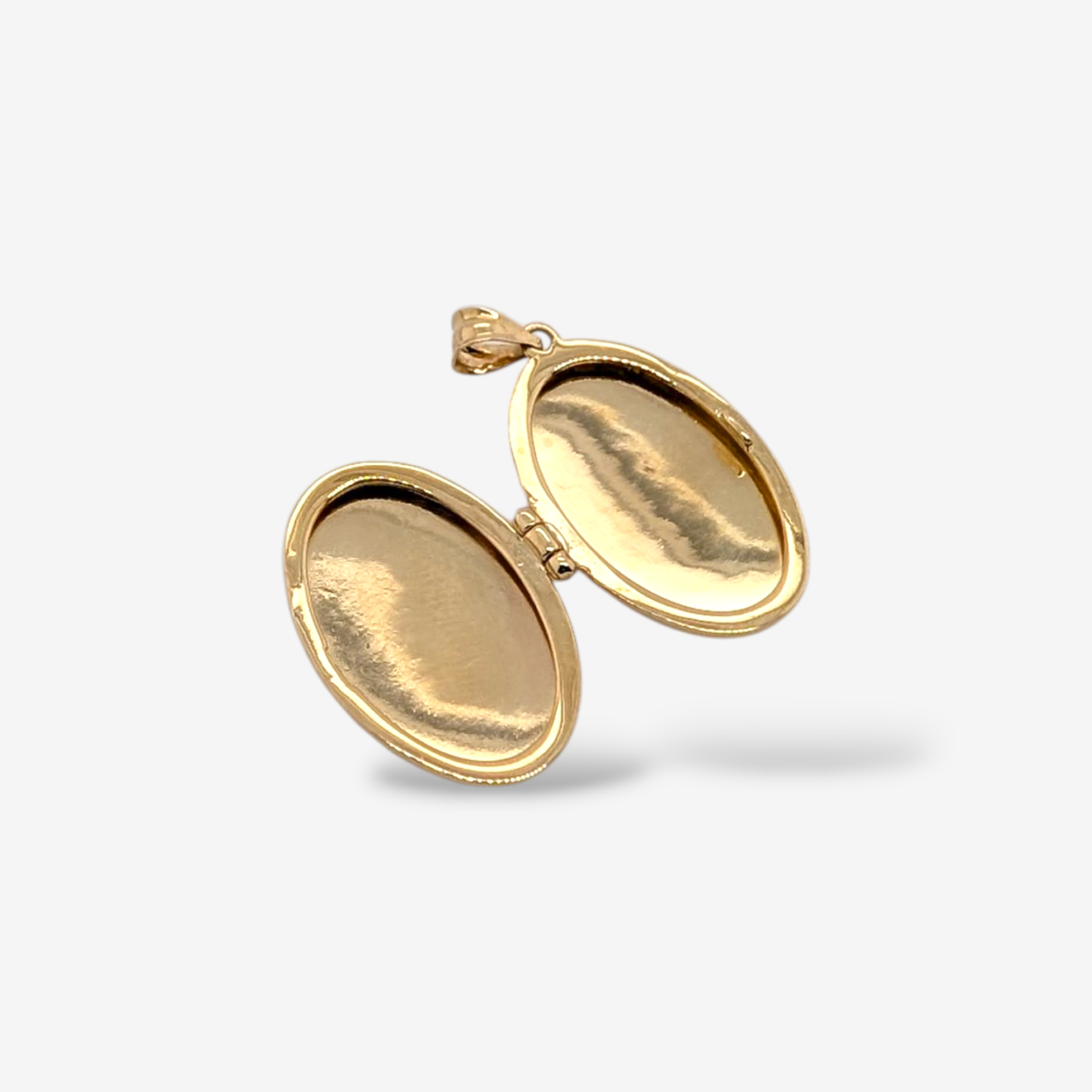 Dije (15 x 23 mm) Relicario Ovalado Liso – Oro Amarillo 14Kts