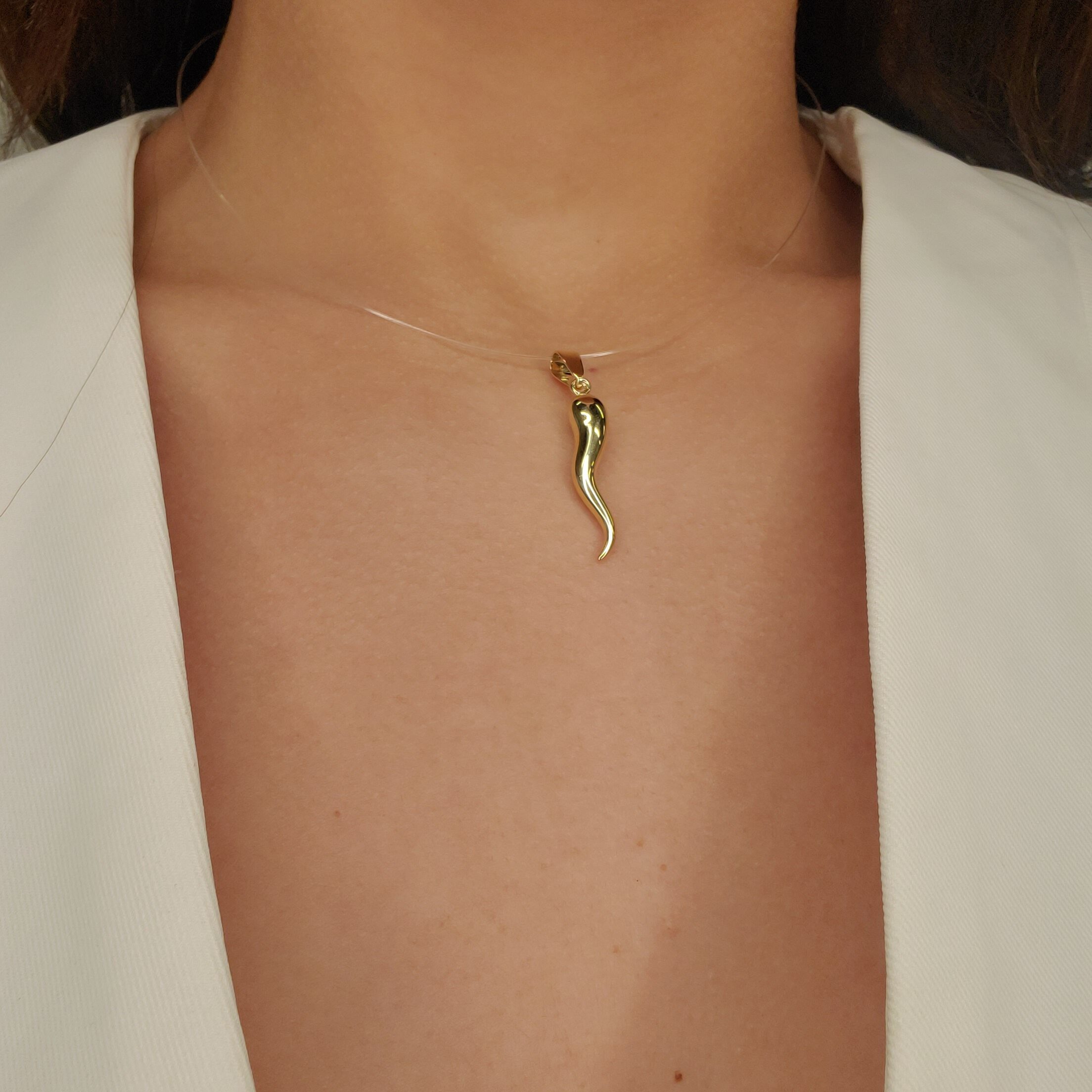 Dije (27 x 6 mm) Cuerno de la Suerte Mediano – Oro Amarillo 14Kts