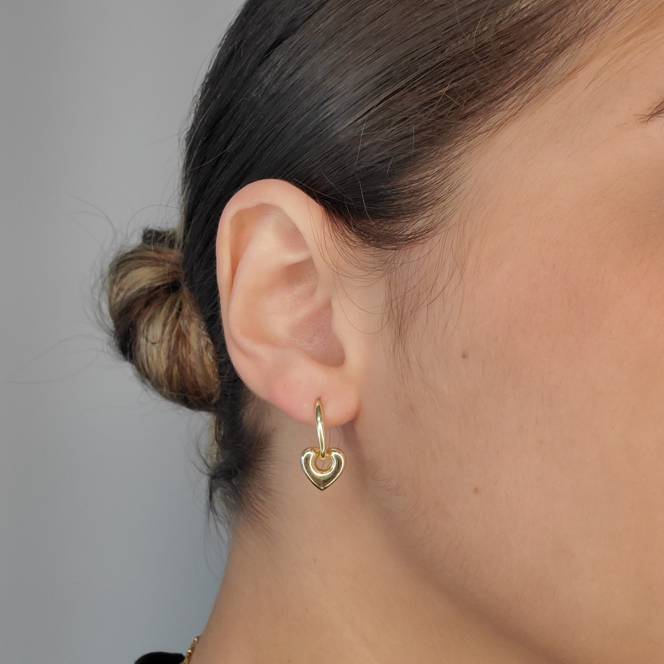 Huggies (8 x 14 mm) c/ Corazon (10 x 9 mm) Puff Pasante – Oro Amarillo 14Kts