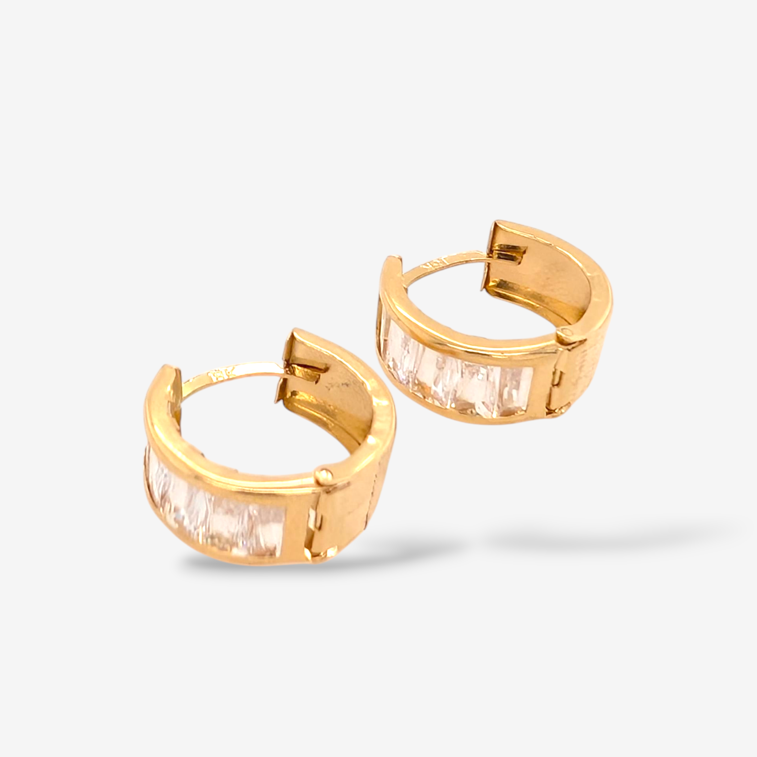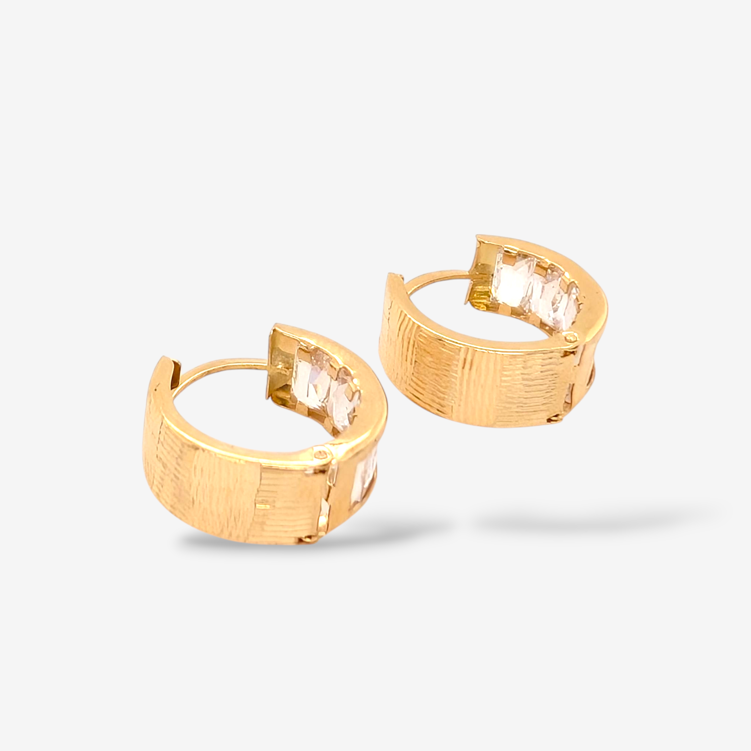 Huggies (Ø 16 mm) Reversibles Zircones Rectangulares/Diamantados – Oro Amarillo 18Kts