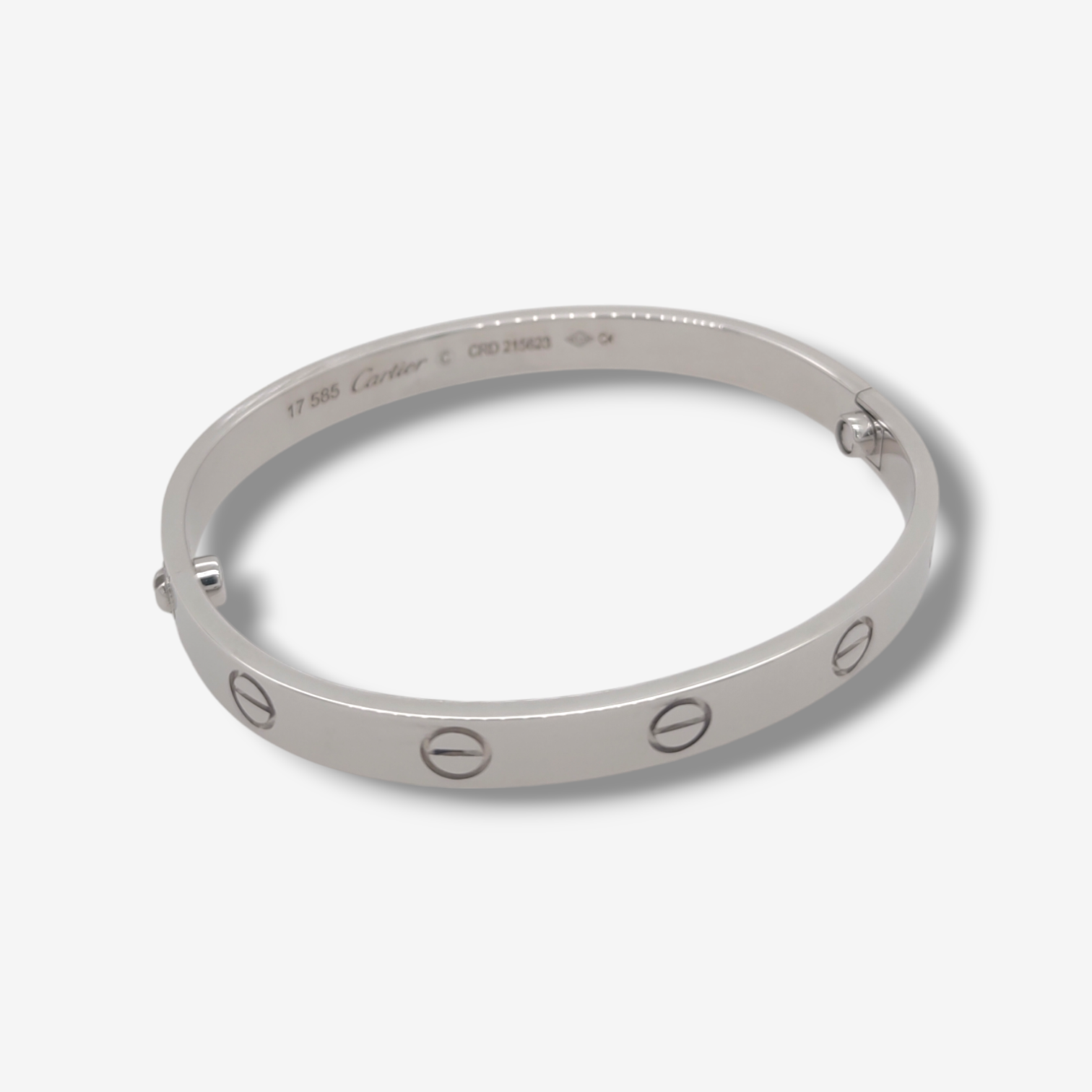 Pulsera (#17) Bangle Maciza c/ Circulos Estampados (6 mm) Doble Cierre & Destornillador – Oro Blanco 14Kts