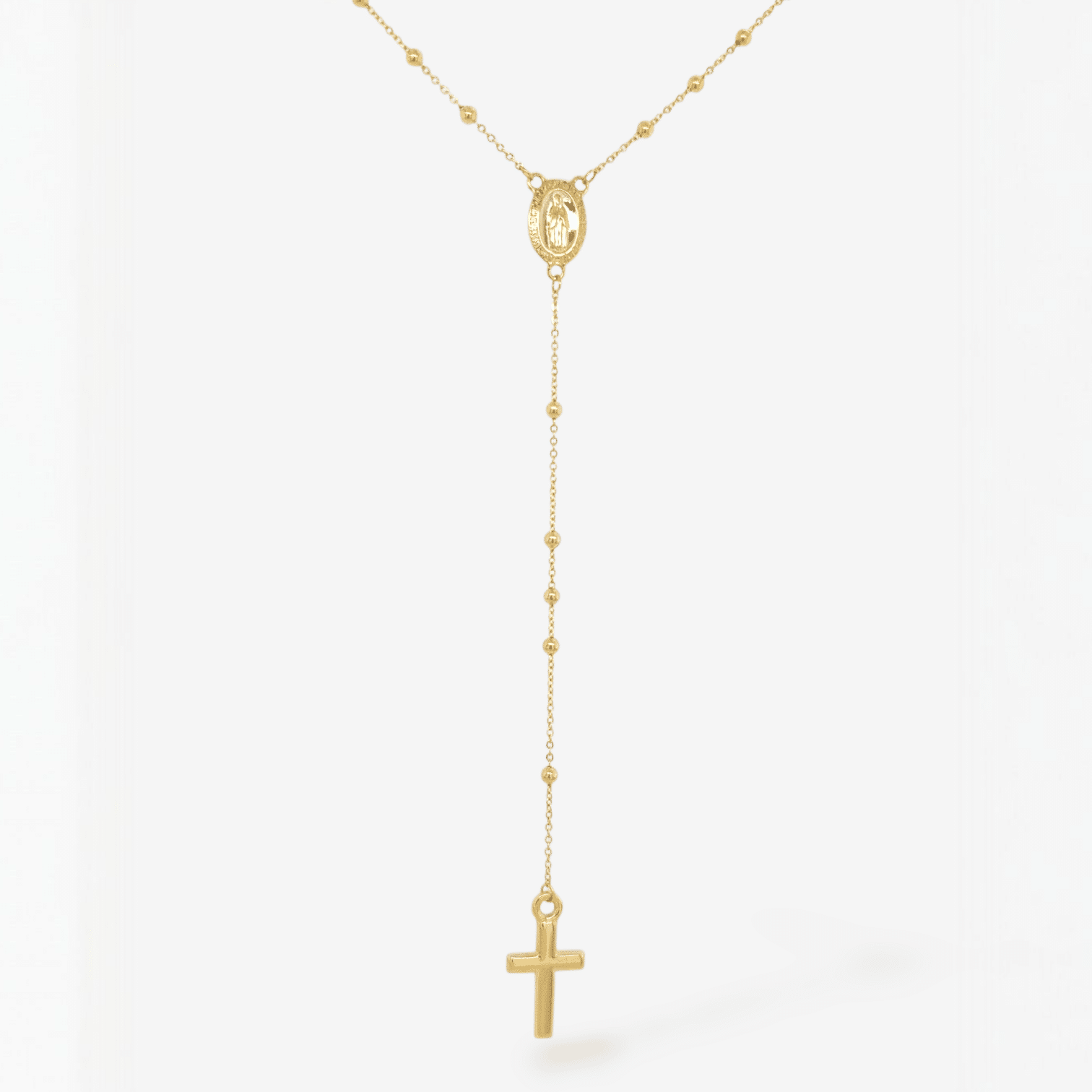 Rosario (60 cm) Largo Esferas Lisas (5 mm) Vitela Guadalupe & Crucifijo c/ Cierre Lobster – Oro Amarillo 14Kts