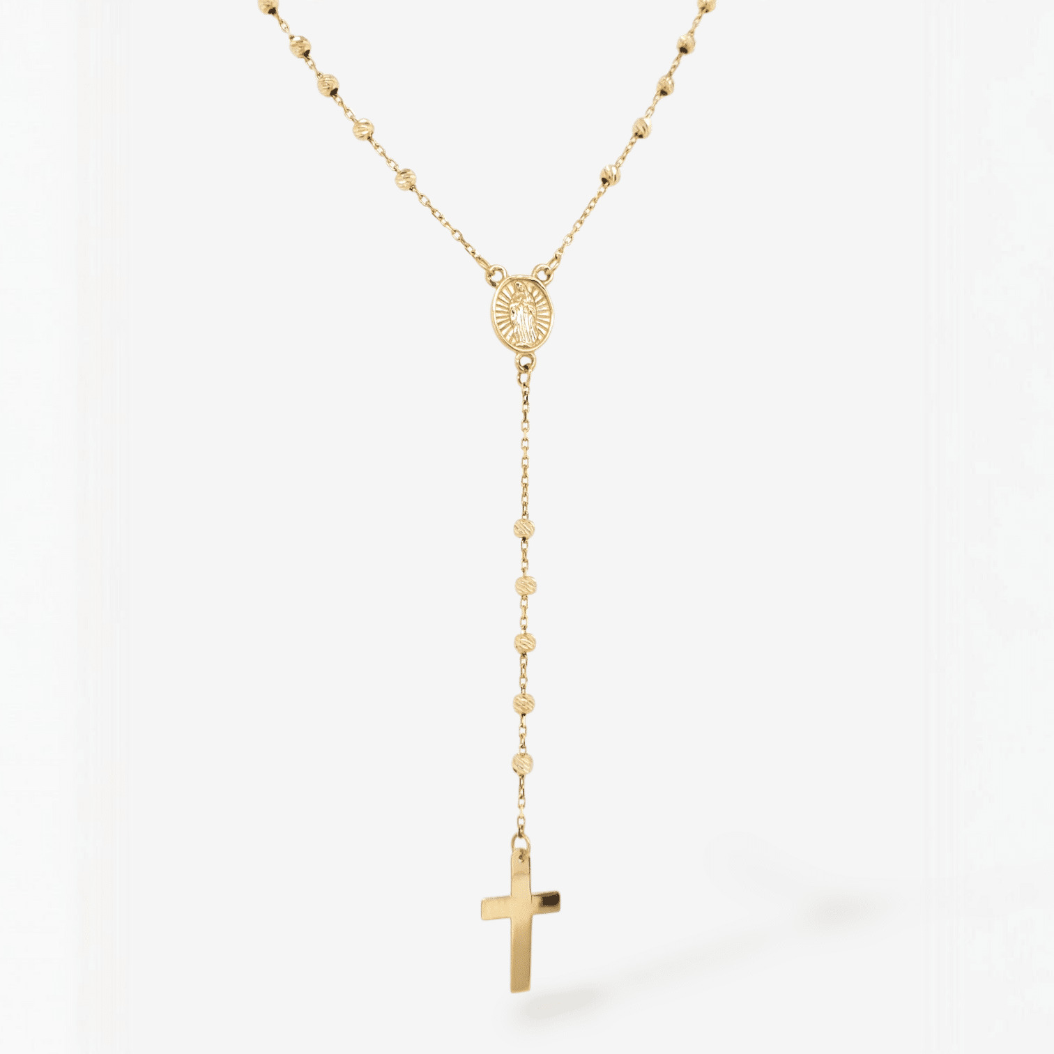 Rosario (45 cm) c/ Esferas Diamantadas (2 mm) Medalla Guadalupe & Cruz c/ Cierre Spring – Oro Amarillo 14Kts