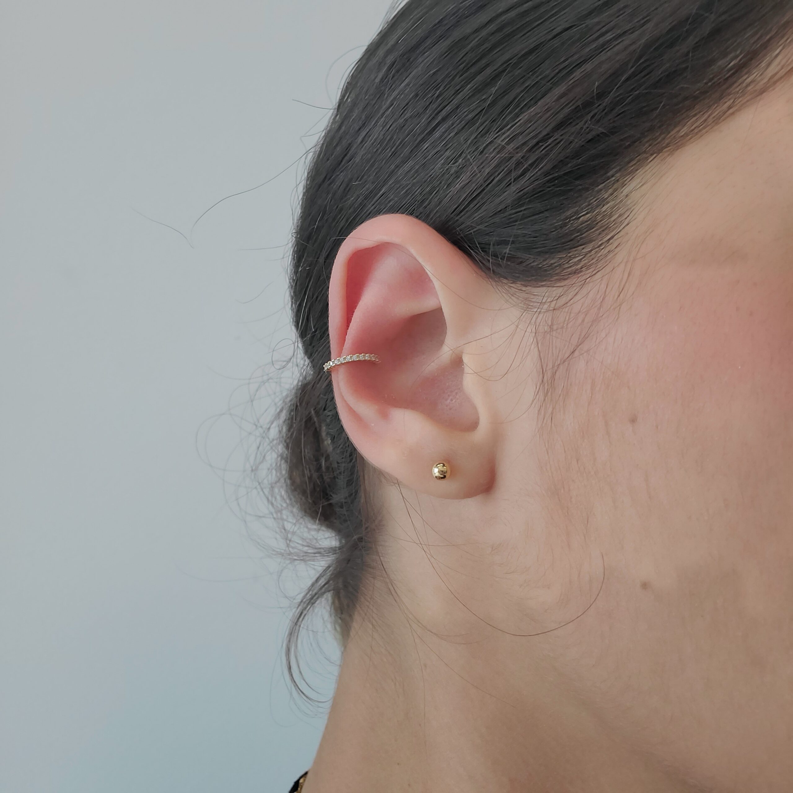 Zarcillo (Ø 12 mm) Unitario Cuff c/ Zircones Pave (1.5 mm) – Oro Amarillo 14Kts