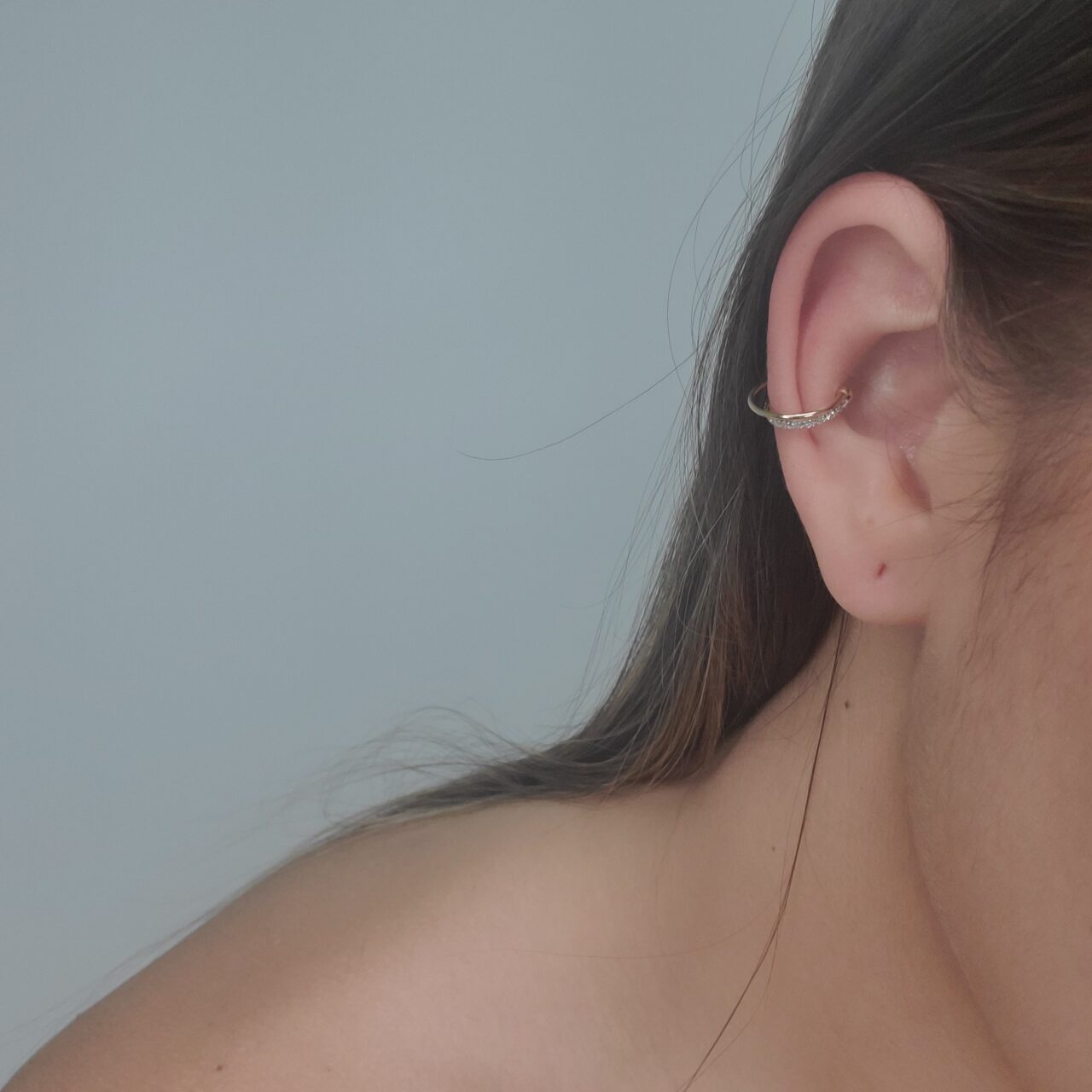 Zarcillo (13 & 11 mm) Unitario Eearcuff Doble Linea Lisa & Diamantes Pave (0.10 Ct) – Oro Amarillo 14Kts