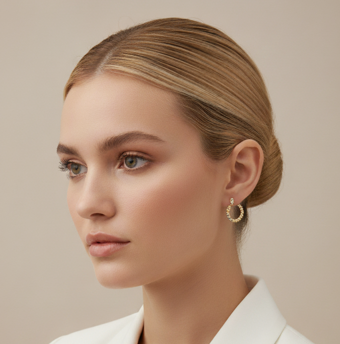 Zarcillos (13 mm) Argollas Pequenas c/ Esferas Diamantadas (2 mm) – Oro Tres Tonos 18Kts
