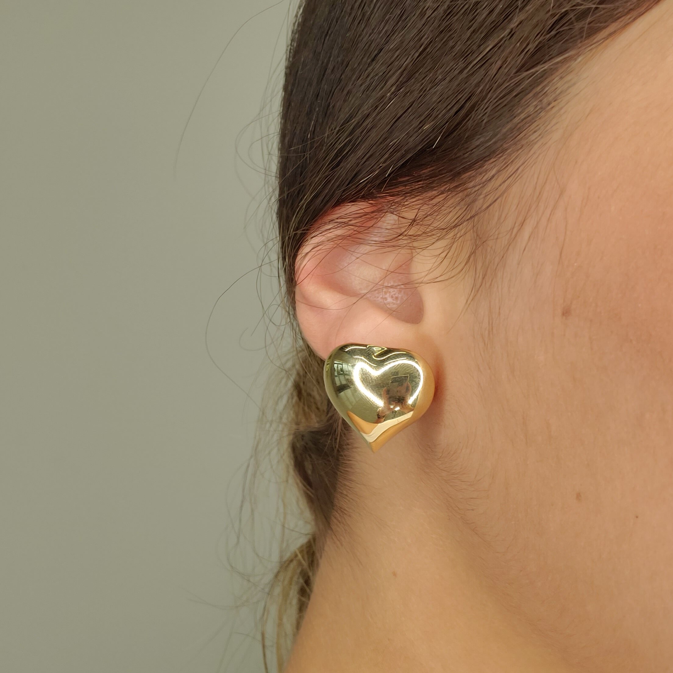 Zarcillos (20 x 20 mm) Post Corazones Puff Grandes – Oro Amarillo 14Kts